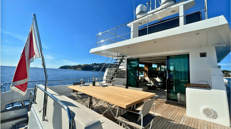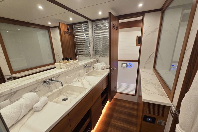 BISE 1, DELTA 88 Power boat. Pioneering design, unmatched hydrodynamic efficiency, luxury comforts and an impeccable craftsmanship enable the 88 to deliver the most memorable on-the-water experience. Her strong and light carbon fiber hull is paired with the latest IPS integration, powering the 80 ft hull to a 39-knot top speed — with up to 40 percent reduction in fuel consumption and emissions compared to equivalent GRP designs. Joystick controls provide superb manoeuvrability and effortless handling when docking and underway. Completed to an owner’s specifications, the 88 carbon features a handmade Scandinavian-style interior highlighted by exceptional visibility, high-end finishes, and generous storage. Designed for owner operation or to run with a small professional crew, the 88 accommodates eight guests with a full-beam king size master suite, a VIP- and two twin-cabins along with crew quarters for up to four crew members. The large, versatile cockpit and exterior deck areas provide space to entertain guests and facilitate any on-the-water life-style activity.