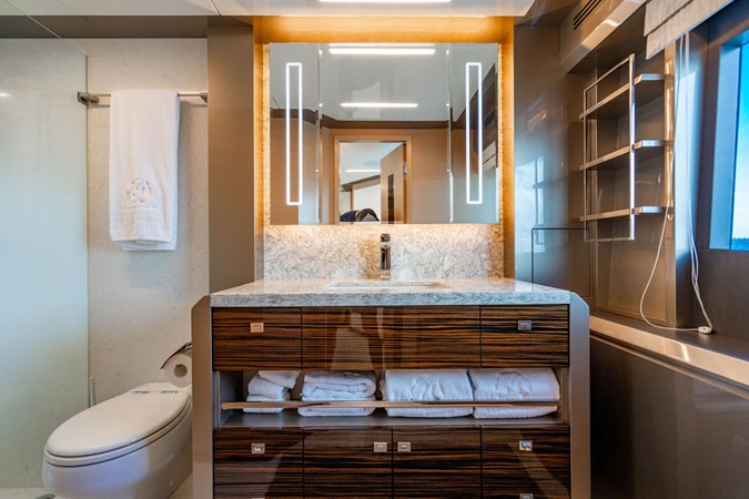 • Grand Salon: The spacious main deck salon offers luxurious social areas with seamless visibility to the bow lounge, creating an open, inviting space ideal for entertaining or relaxing.