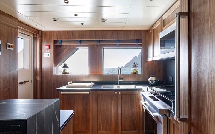 The crew quarters, designed to house four members, are located forward on the Main deck. This area includes a substantial crew mess for communal dining and relaxation. The quarters are strategically connected to the wheelhouse on the Upper deck via a dedicated staircase, ensuring efficient
