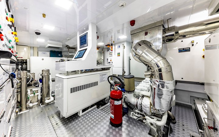 Empire, designed with Hydro Tec’s signature Darwin aesthetics and CdM’s unique technical approach, is a testament to superior construction and design. The yacht’s project has been developed for long voyages also in high-latitude regions, so it includes an ‘ice belt’ at the waterline and reinforced hull and rudders for icy conditions. According to Owner’s requests, the hull has been partially built with bulletproof steel plates, reflecting his intention to navigate remote and challenging seas. Another unique feature is a fourth pilot station in the engine room.