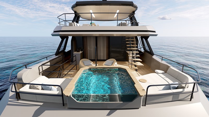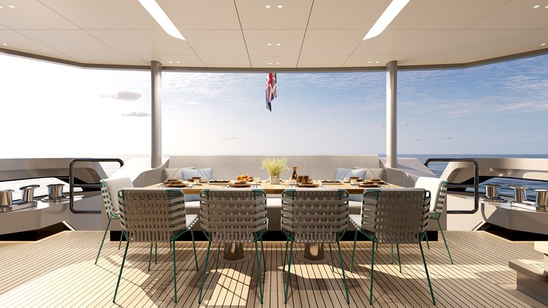 This yacht is by far the most long-range traveler of her class. The fuel tanks bear a tremendous amount: 39.75 tons. Powered by the double 450 HP Cummins QSM 11 set, the vessel can cruise at 8.5 knots for a great 5,000 miles. The maximum speed is 10.5 knots.
