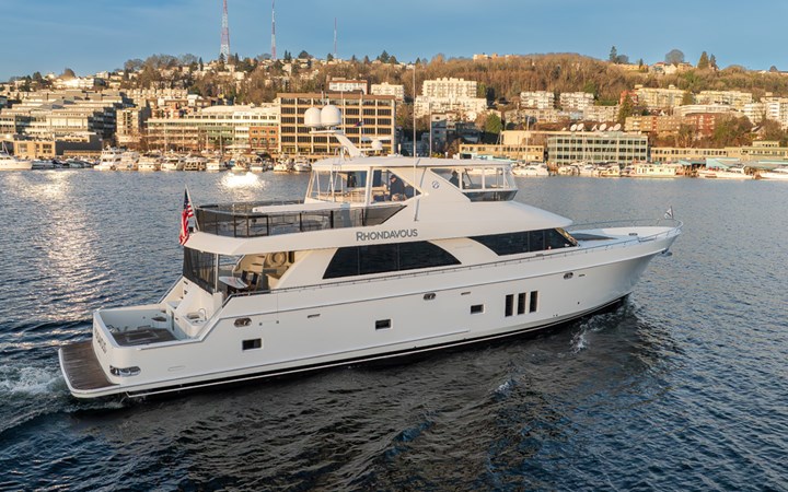 Experience the ultimate in elevated yachting with this 2014 Ocean Alexander 82’ Cockpit Motor Yacht, affectionately named “Rhondavous.” This is hull #2 of only two model 82’s ever built with this rare factory cockpit option. Renowned for its exquisite craftsmanship, spacious design, and exceptional performance at sea, this yacht is the perfect blend of luxury, performance and comfort, whether for cruising, entertaining, or extended stays onboard with family and friends.