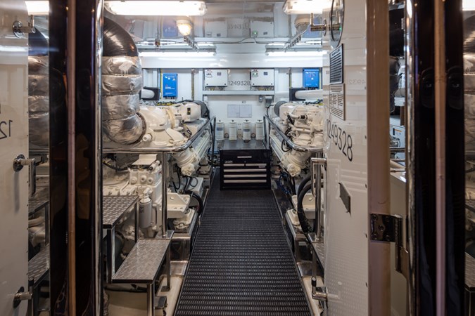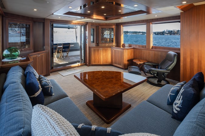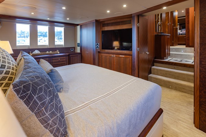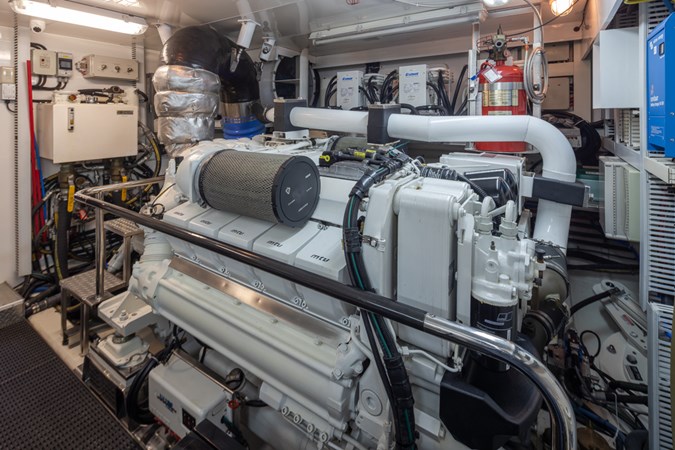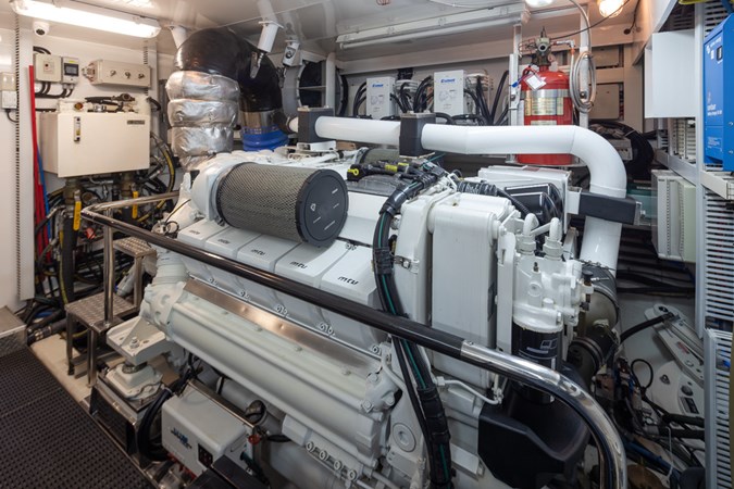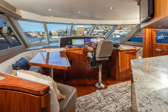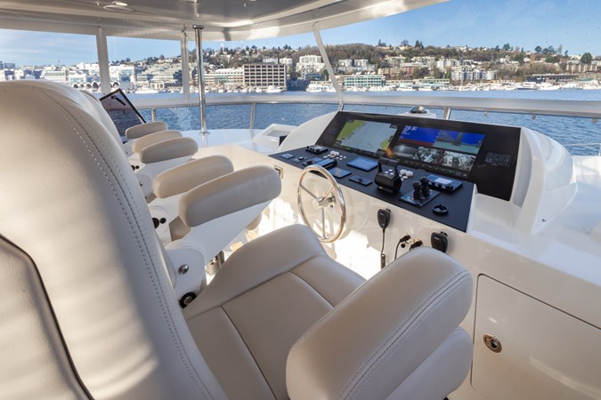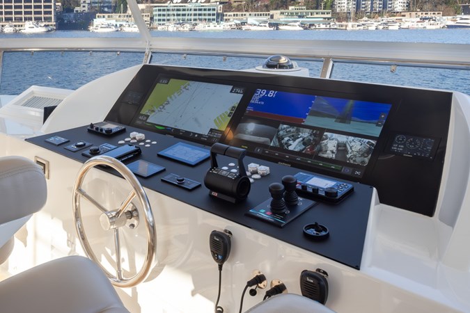 This beautiful yacht has had a 2025 refit with no expense spared. The highest quality brand new 2025 Garmin electronics, Lithium battery-inverter system and new upgraded Monogram oven, microwave and induction cooktop in the gourmet chef’s galley. New upgraded interior and exterior upholstery has been installed in the salon, flybridge dining area, helm seats, settee, outdoor seating areas, bow sunbed and a complete set of custom covers to keep it all looking great. Additional enhancements include new bedding, new carpet, new poly carb flybridge enclosure and new overhead recessed deck lighting fixtures throughout the vessel.
