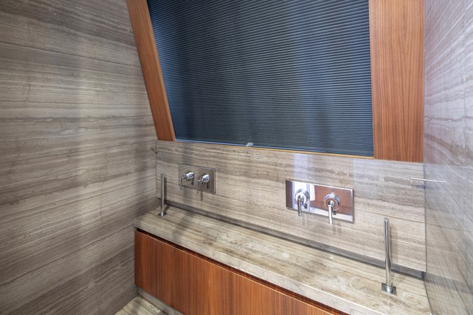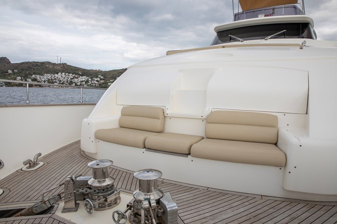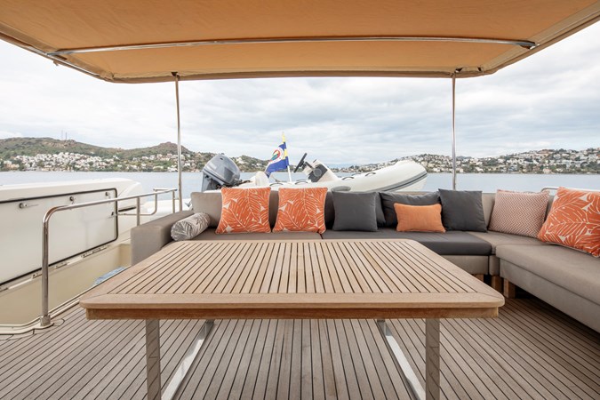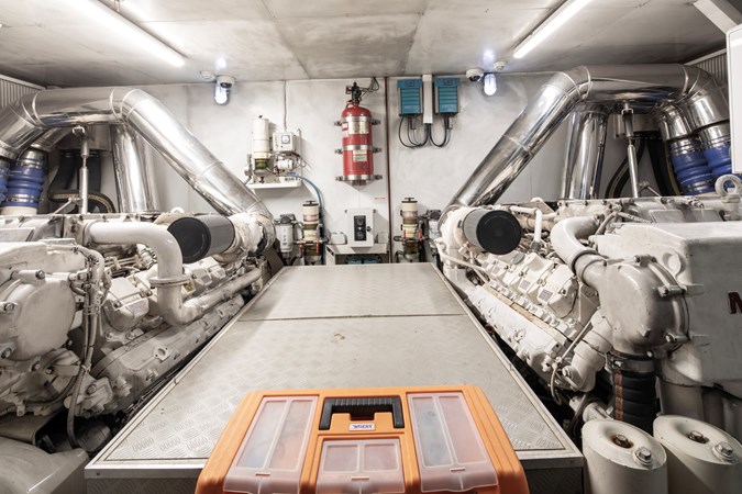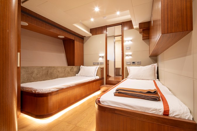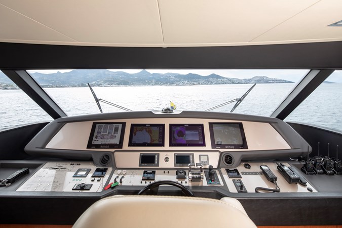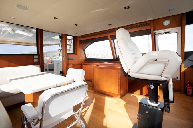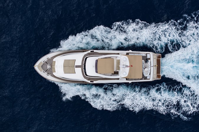 Designed for comfortable extended cruising, she features a full-beam main-deck master suite, a five-cabin layout for up to ten guests, and reliable twin MAN diesel engines with conventional shaft drive. The semi-displacement Navetta hull ensures excellent seakeeping, quiet operation, and efficiency at cruising speeds, making her ideal for Mediterranean and offshore passages.