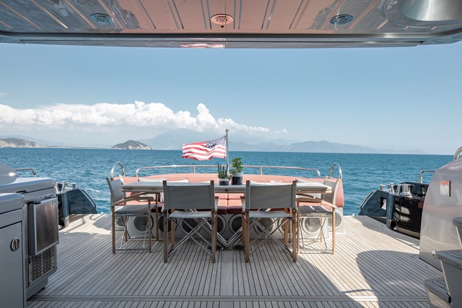 Sitting beneath the vast sliding hardtop roof is the main saloon and cockpit. When opened, natural light illuminates the interior allowing guests to indulge in the lavish surroundings.