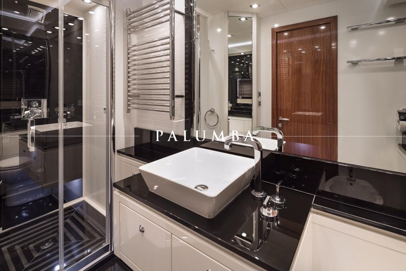 PALUMBA´s interior layout can comfortably accommodate up to 8 guests overnight in 4 well-equipped staterooms, including a sumptuous master stateroom featuring a large bathroom and a dressing room, a generous VIP stateroom with dressing room and a spacious bathroom, a double stateroom and one twin, both with ensuite facilities.