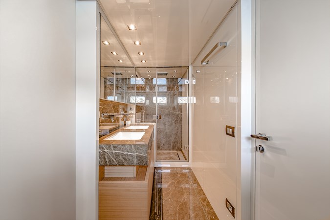 Sanlorenzo SL86 2024 Italian elegance and high performance in the 26 metre class. Powered by twin MAN 12V 2000 HP engines it reaches 30 plus knots with remarkable comfort and stability. The yacht offers accommodation for 8 guests in a refined layout designed by Officina Italiana Design featuring large hull windows a spacious flybridge and a warm contemporary interior that highlights premium craftsmanship. With strong seakeeping and wide customization options the SL86 stands out as an exceptional choice for private Mediterranean cruising.