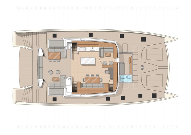 The Long Island 86 Power is a large cruising power catamaran designed by Marc Lombard Design Group and built by JFA Yachts. It features an aluminum hull with a composite deck, offering strength, reduced weight, and durability.