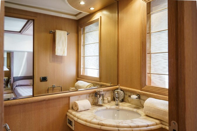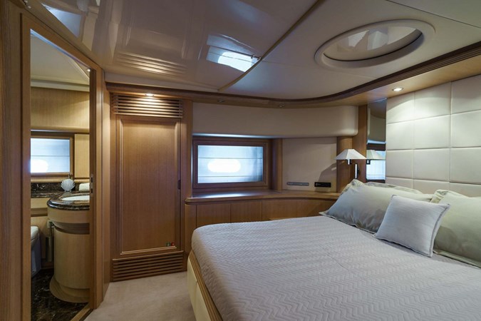 ALLIE – Alalunga 85X SPORT is the epitome of sporty elegance and refined luxury. Her sleek design is matched by a crème-de-la-crème interior, where every cabin boasts its own en-suite bathroom, offering privacy and comfort for all guests on board.