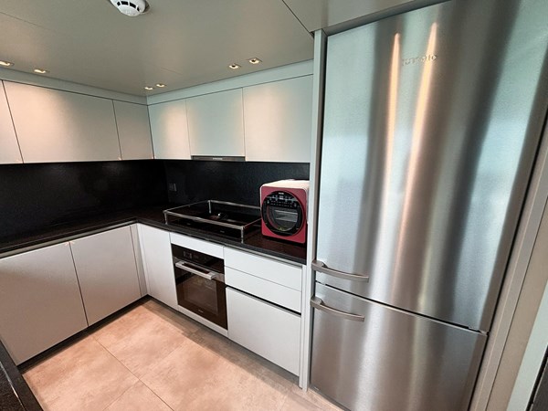 The beach club area of this SX 88 is truly a standout feature, bringing you closer to the water. With its spacious and open layout, this area transforms into a luxurious retreat, perfect for lounging, entertaining, or enjoying water activities. You can also fit a jet-tender of up to 4.5m, and a jet ski on her swim platform.