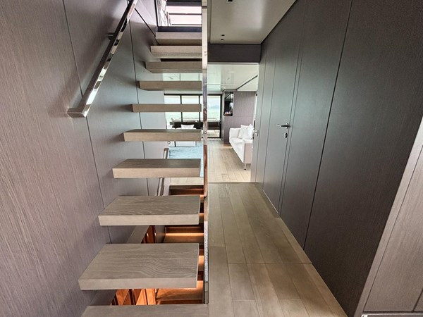 The flybridge offers an elevated outdoor space that’s perfect for enjoying the view and the open air. From sunbathing, to al-fresco dining, the flybridge provides a relaxed atmosphere for both quiet moments and social gatherings. Whether you’re cruising or at anchor, the flybridge is a prime spot to take in the surroundings while enjoying the yacht’s luxurious features.