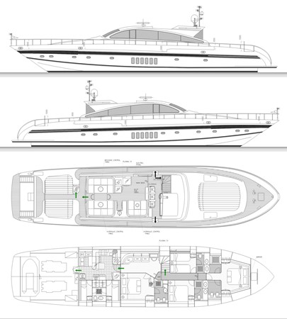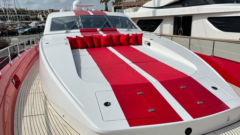 Mysven features a planing GRP hull and grp superstructure, with teak decks. Powered by 2 MTU 1,998hp diesel engines and propelled by her twin screw – surface drives Motor yacht Mysven is capable of a top speed of 38 knots, and comfortably cruises at 34 knots. She can carry around 8,000 litres of diesel on-board in her fuel tanks. Her water tanks store around 2,000 litres of fresh water.