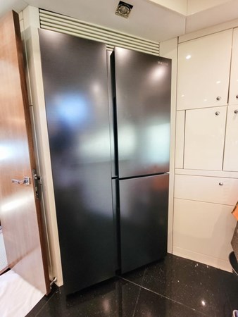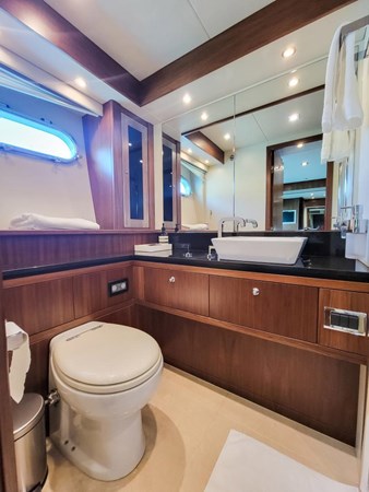 This Sunseeker 86 yacht is very well managed by the owner, with support from a professional yacht management company. The yacht’s hull is painted with a dark navy-blue colour, which is an iconic colour that has been widely chosen by the Sunseeker owners. This yacht has 4 cabins in total, with 1 Master, 1 VIP, and 2 Guest rooms. The 2 crew cabins, with 4 berths in total, are located next to the engine room.