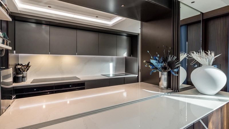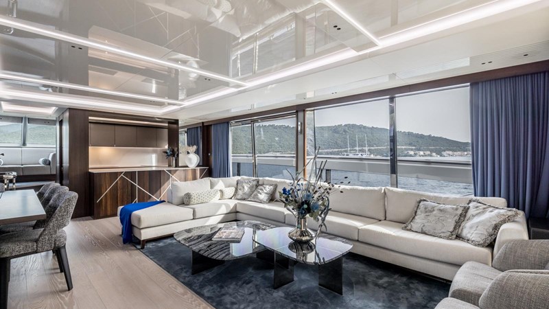 Following a comprehensive refit in 2024, the yacht now features state-of-the-art indoor and outdoor lighting, upgraded to customizable RGBW systems. These new lighting enhancements, controlled via intuitive touch screens, allow guests to tailor the ambiance to their exact preferences, adding a modern touch to an already luxurious setting.