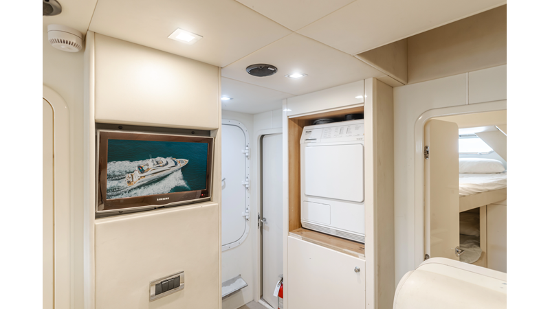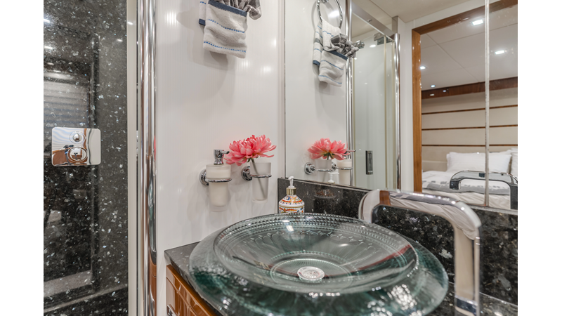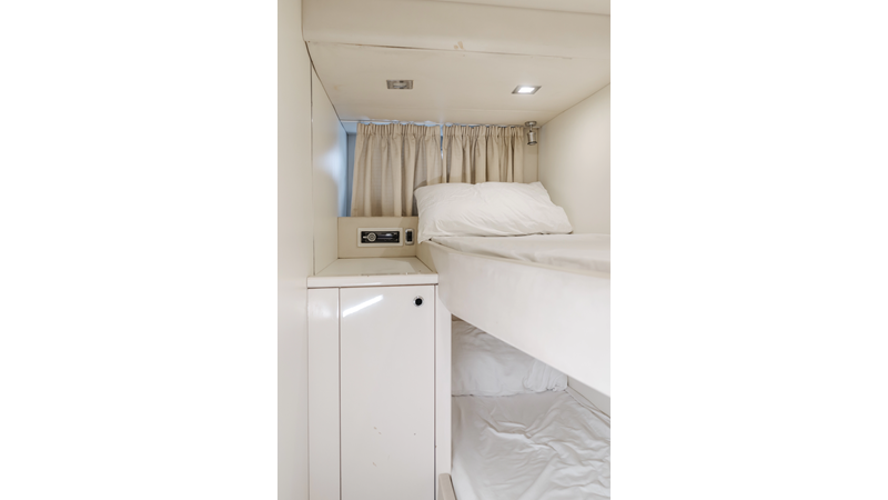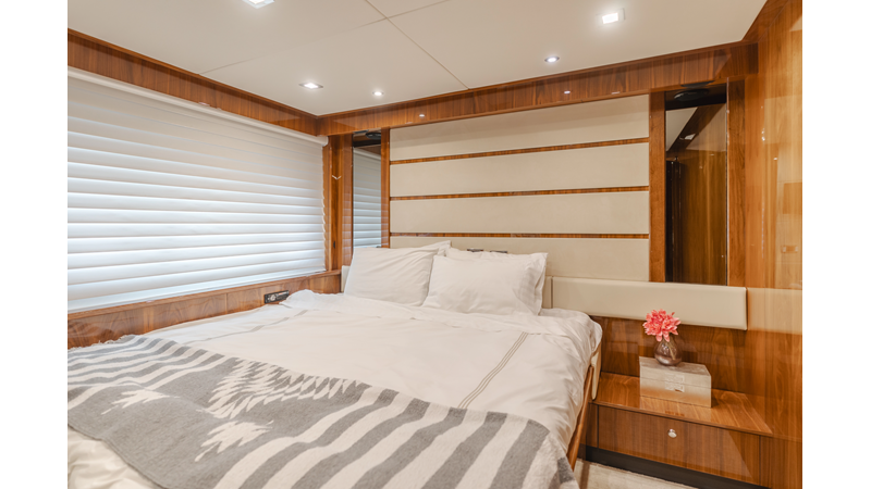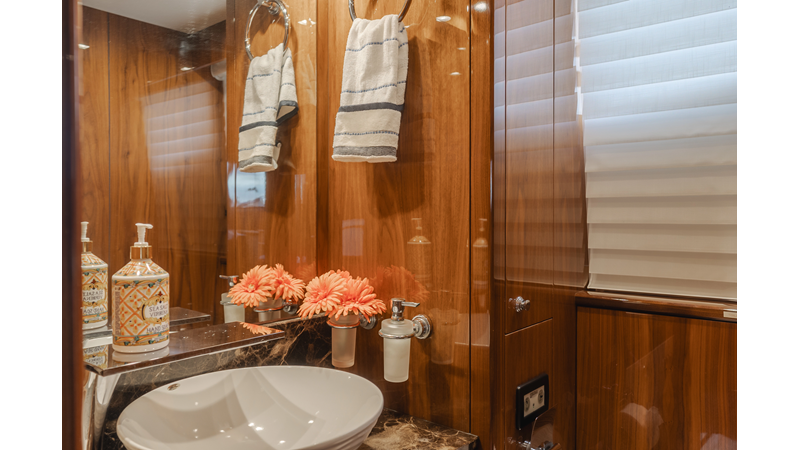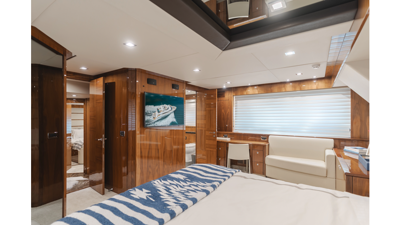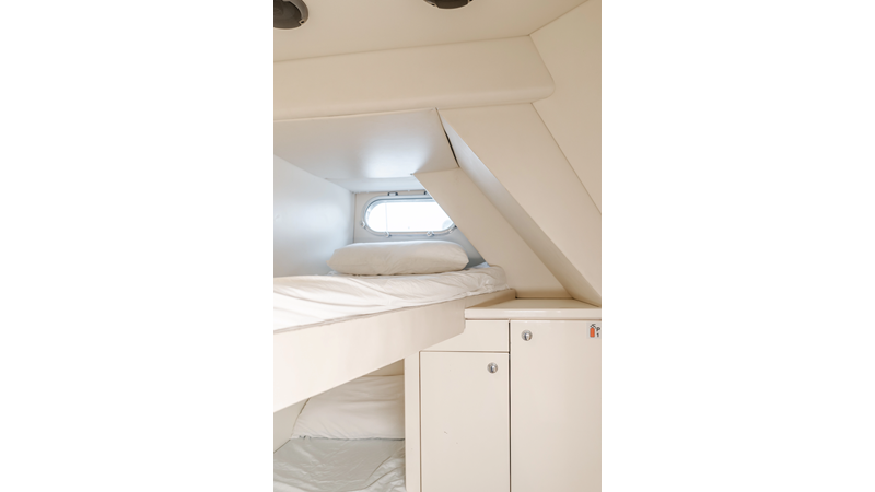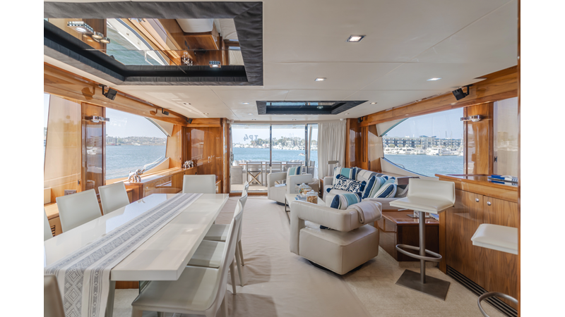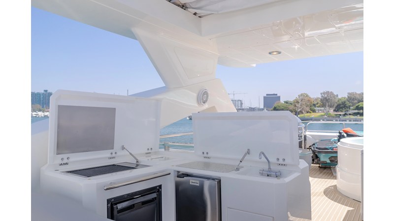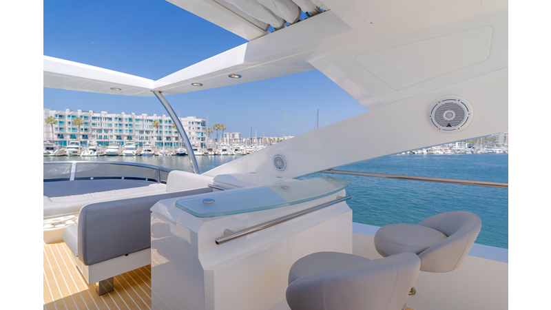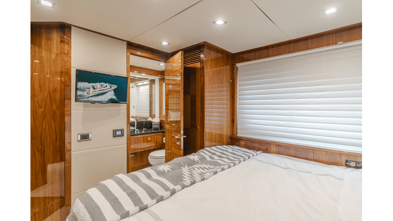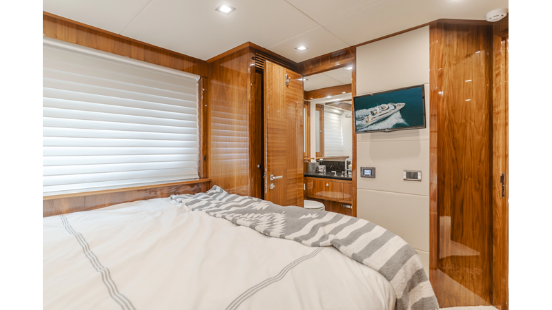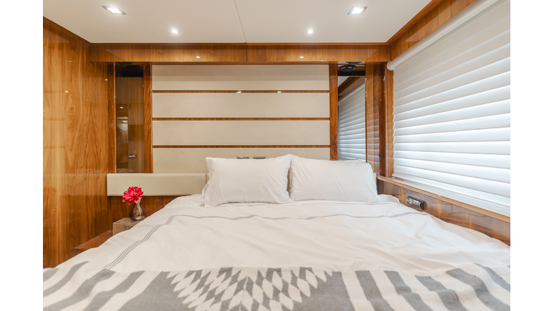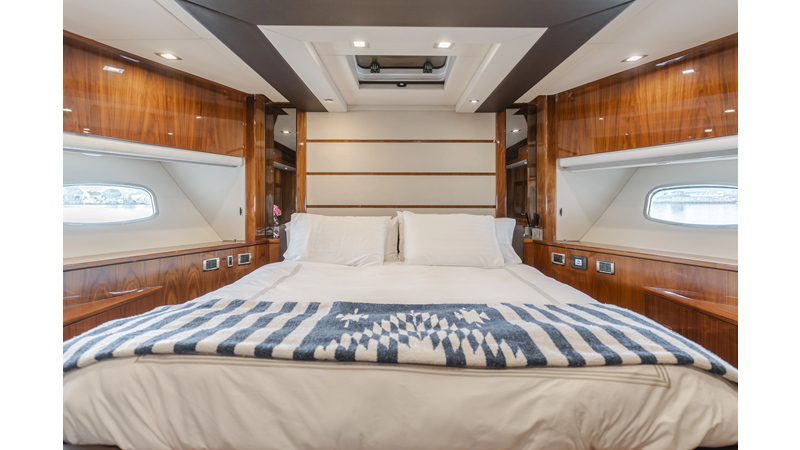 Equipped with zero-speed fin stabilization, ensuring a comfortable ride underway, or at anchor.