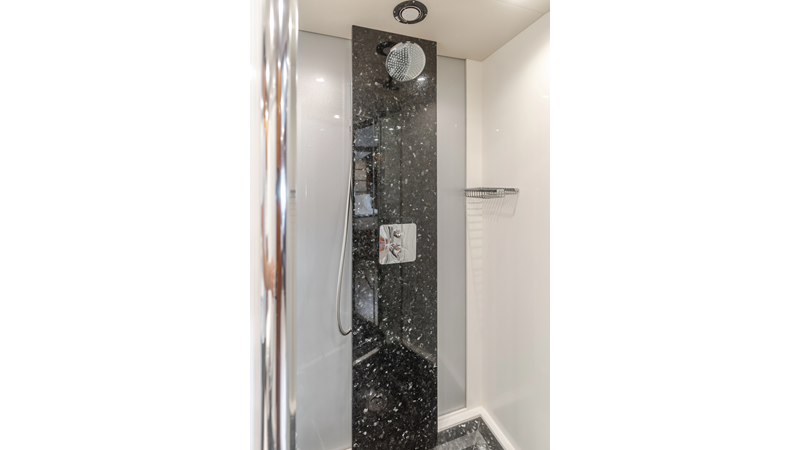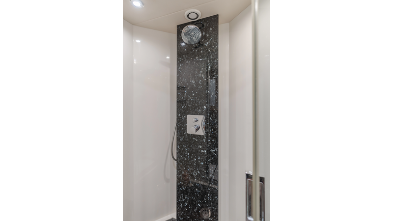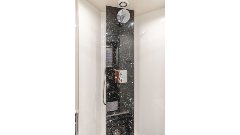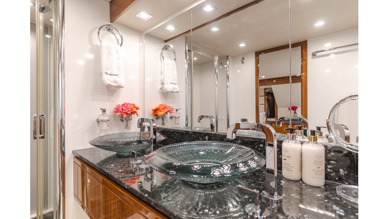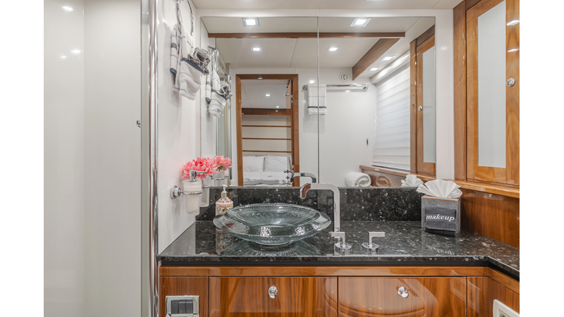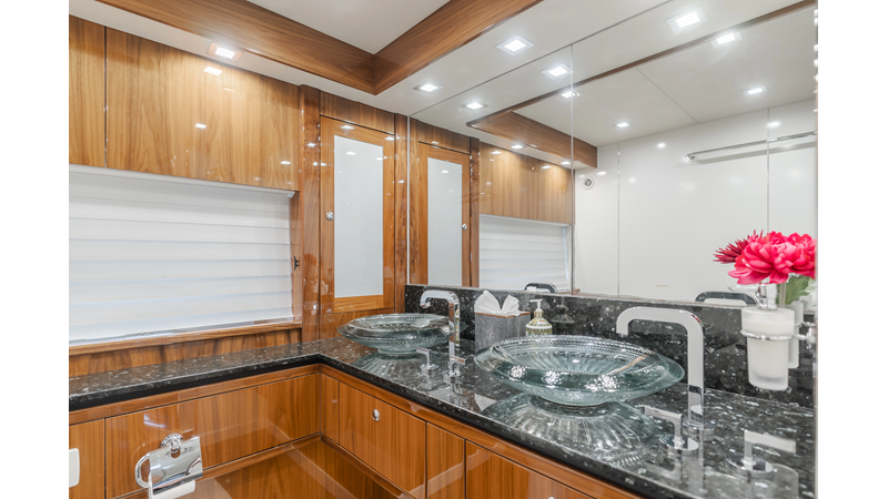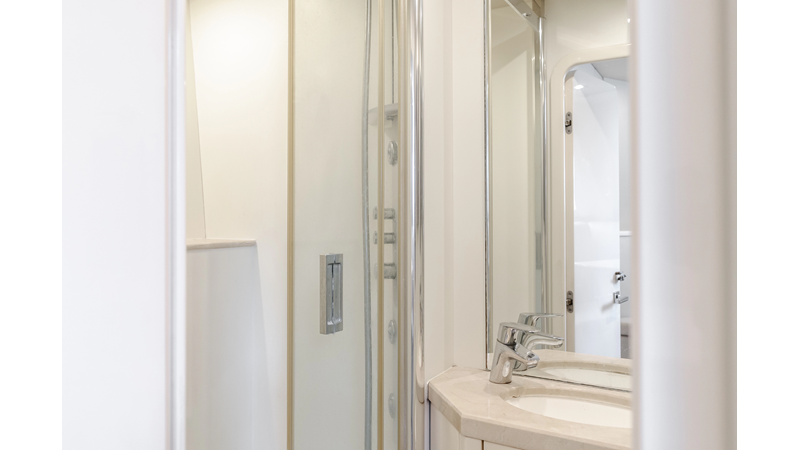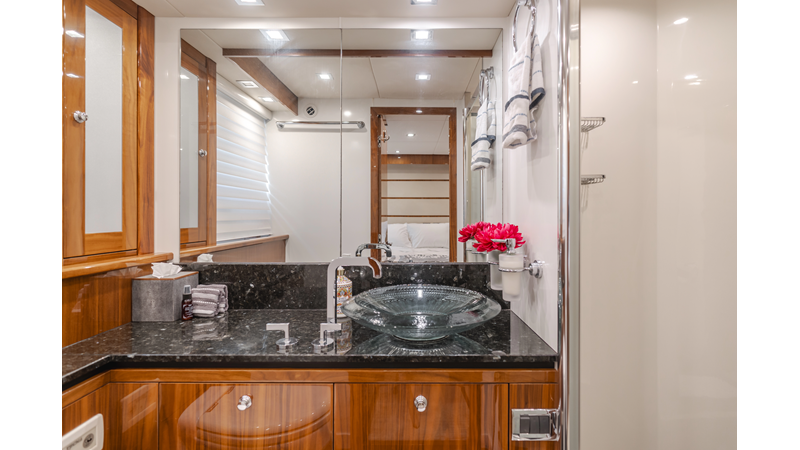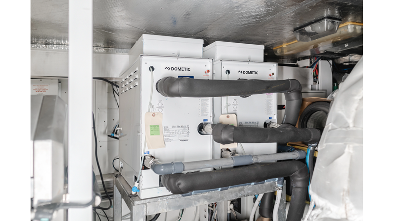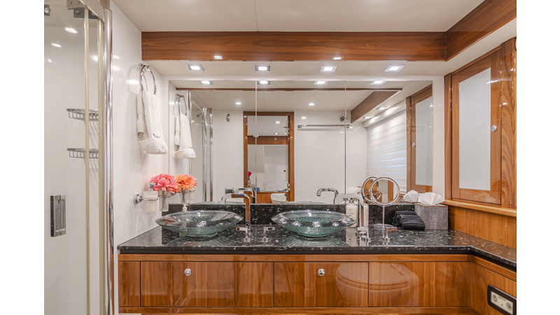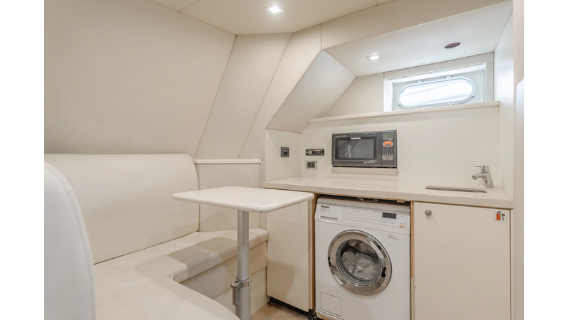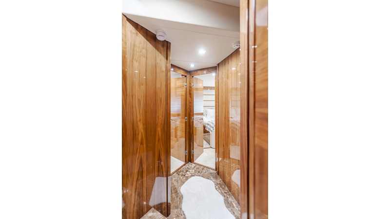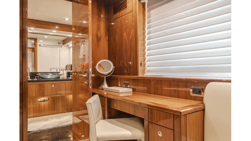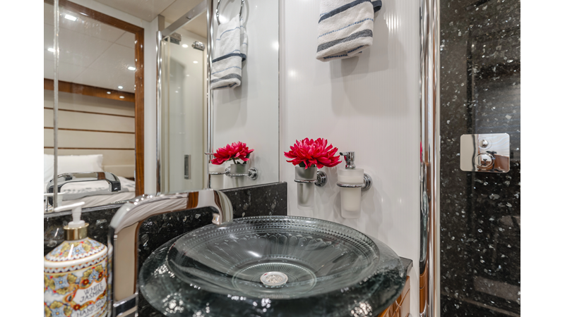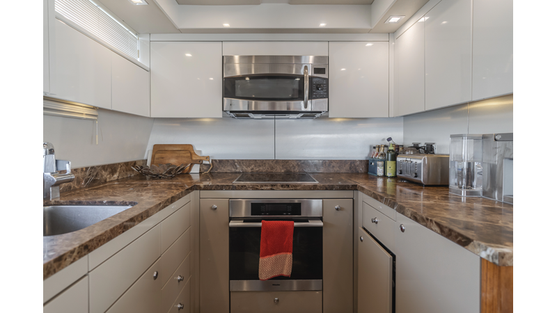 Equipped with zero-speed fin stabilization, ensuring a comfortable ride underway, or at anchor.