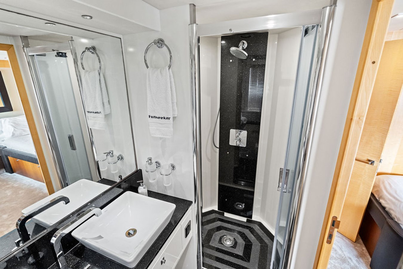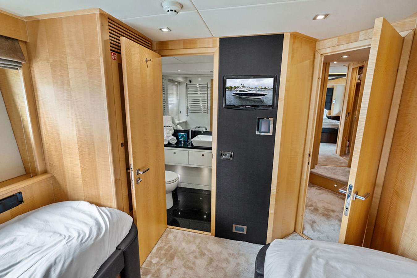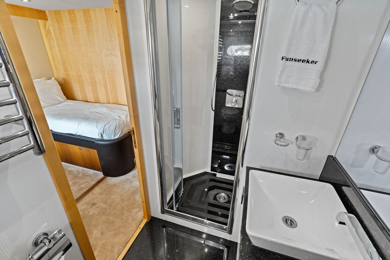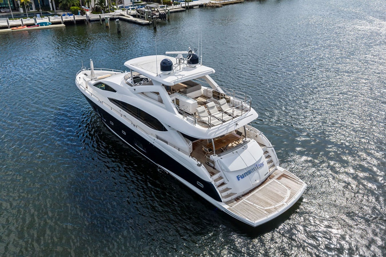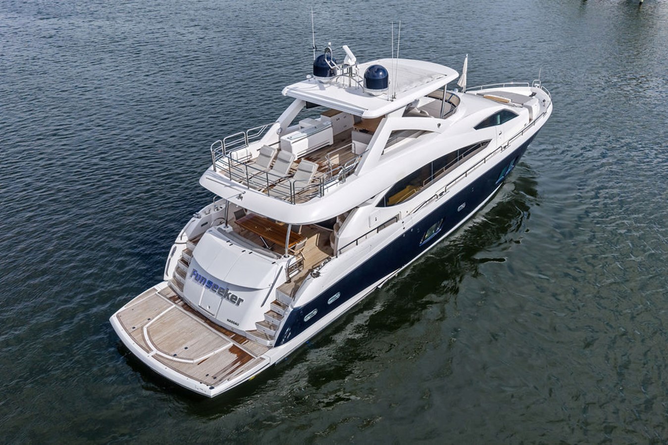 The 2012 Sunseeker 88 “Funseeker” is a luxury motor yacht combining elegant design, high-end finishes, and exceptional performance. Accommodating up to 8 guests in 4 spacious cabins, it features expansive indoor and outdoor living areas, including a flybridge with lounge and dining space. Powered by twin MTU engines and equipped with advanced stabilizers, navigation, and entertainment systems, it delivers a smooth and comfortable cruising experience. With over $750,000 in recent upgrades, “Funseeker” is fully updated and turnkey, ready for immediate enjoyment.