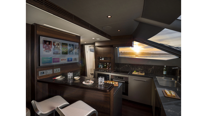 The 88 Yacht represents a refined step into larger-yacht living, offering generous deck areas, elegant interior spaces, and confident performance. Her flybridge and cockpit are designed for entertaining, while the interior showcases Sunseeker’s signature craftsmanship and thoughtful layout. A versatile platform for cruising, hosting, and long stays onboard.