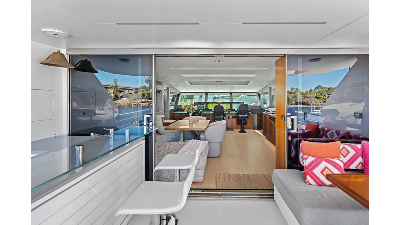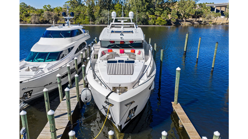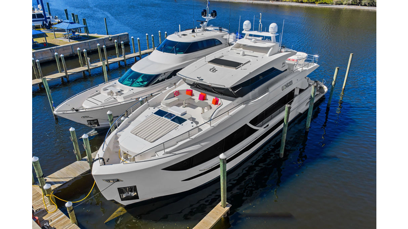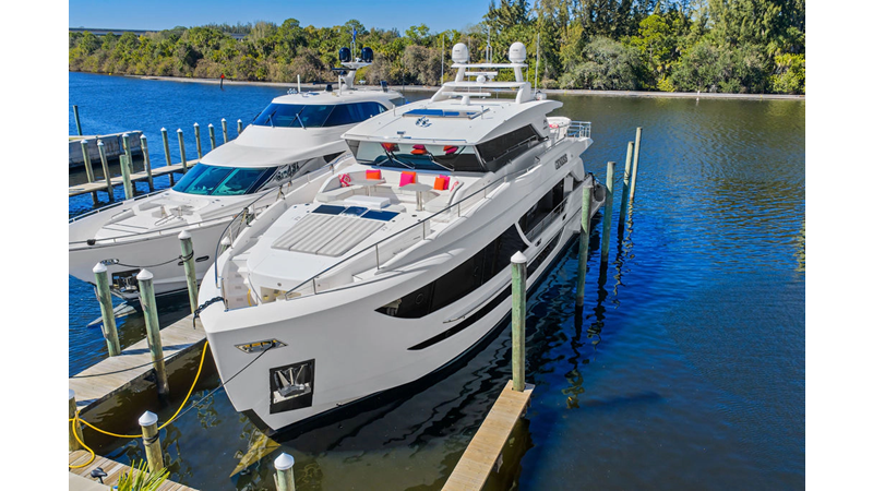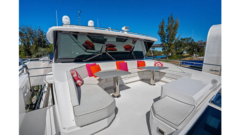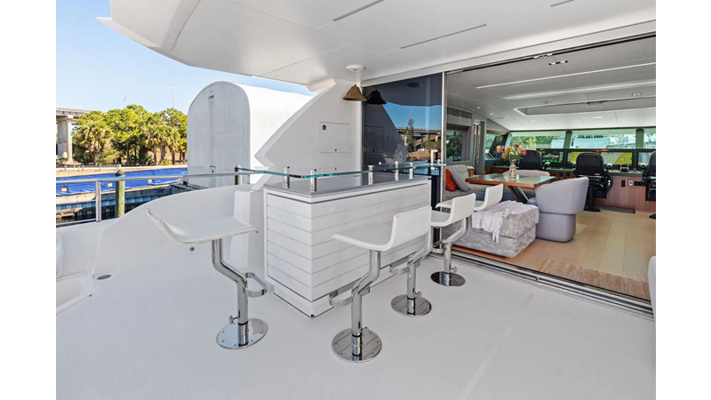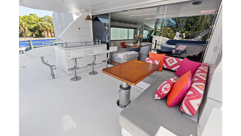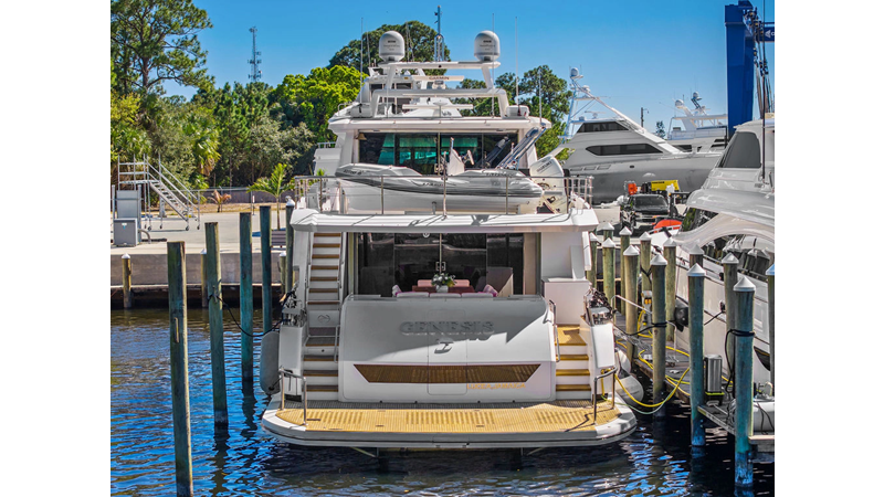 GENESIS, the 2020 Horizon FD87 represents the cleanest FD87 on the market today and offers amenties not typically found on a 90fter such as a true designated beach club with full service bar, lounge area and kitchen located back aft on the main deck.