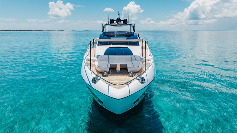 Equipped with twin MTU 12V 2000 M96L engines, KIYOMIZU cruises effortlessly at 21 knots and reaches speeds up to 26 knots. Stabilizers ensure comfort at anchor and underway, while her planing hull delivers the agility and responsiveness Riva is known for. Whether island-hopping or covering longer distances, she offers exhilarating performance without compromising on comfort.