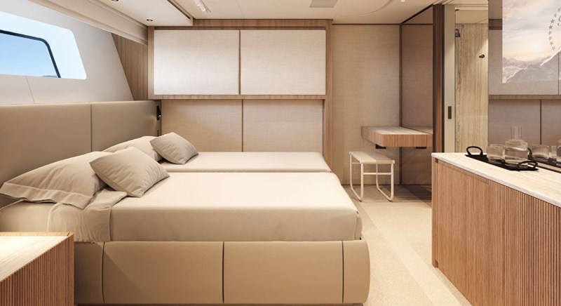 The Sanlorenzo SD90 is a 90-foot semi-displacement luxury yacht offering generous volume, innovative space planning and exceptional liveability across its main and lower decks. Designed with elegant lines, large windows and flexible interior layouts, it comfortably accommodates up to 8 guests in four cabins with accommodations for four crew, blending refined Italian design with efficient cruising performance and long-range capability