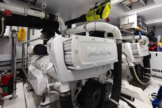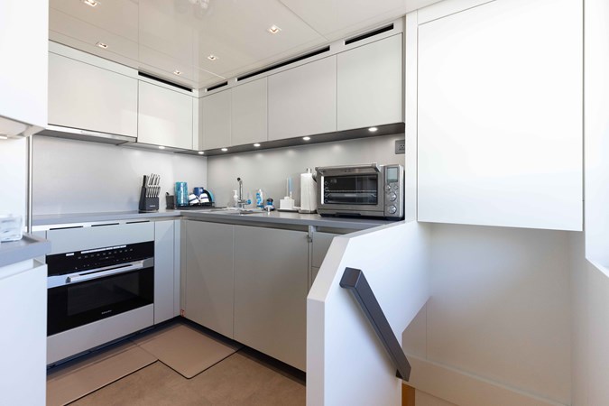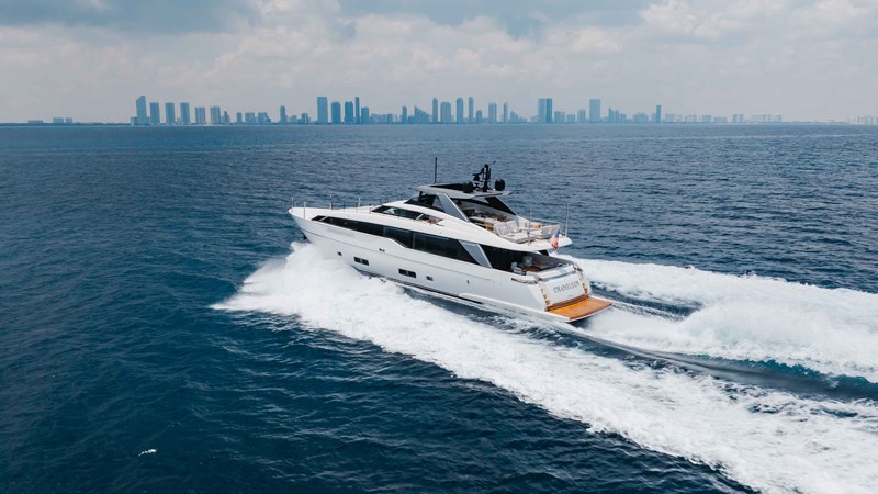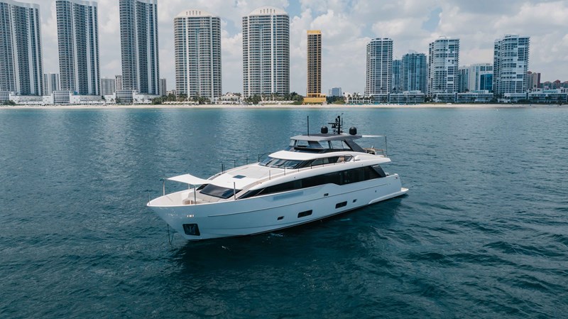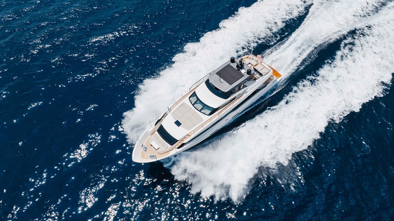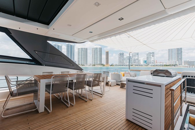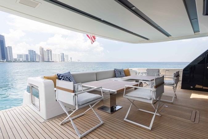 Chameleon is a fully optioned Americas edition yacht, flagged in the United States with Duty paid. A wide range of desirable features and options include CNC electric stabilizer fins, a louvered sunroof, stern garage with a hydraulic swim platform, and more. Furthermore, the owner has invested a significant amount in additional aftermarket upgrades, including: Control 4 iPad-controlled AV, a starling internet infrastructure, upgraded sound, Ubiquity AI cameras, water filtration, extra refrigeration, high-capacity ice makers, upgraded AC chillers, flybridge eisenglass, and a Williams tender.