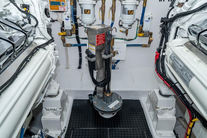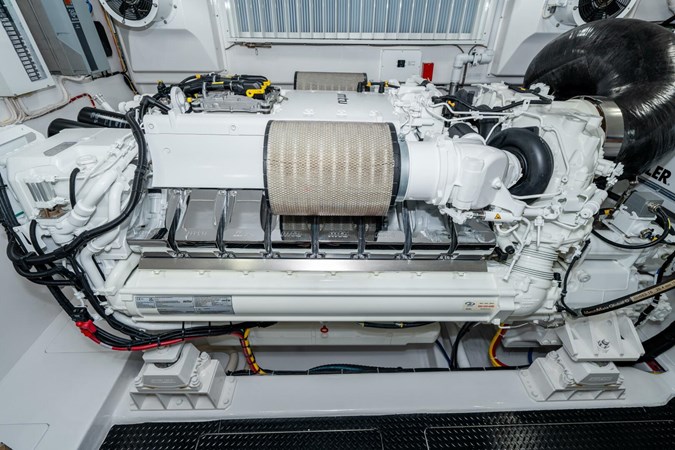 Notable highlights include MTU 2635 MHP power , Seakeeper SK40 gyro , four fuel tanks , bow thruster , dual 40kW Kohler generators , and a beautifully finished natural walnut satin interior . Designed for serious fishing, extended cruising, and owner comfort.