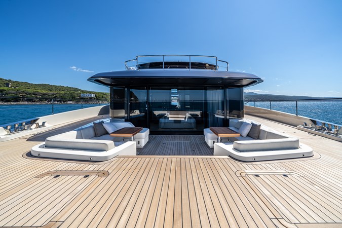 ACALI continues to impress on her exterior decks. The foredeck sunpad is an ideal spot for soaking up the sun, while the 67-square-meter beach club is a water lover’s paradise. With fold-down bulwarks and space for water toys—including a 4.5-meter tender and a Jet Ski—this is where you’ll want to spend most of your time. The transom hatch even transforms the tender garage into an extended swim platform, providing endless options for fun on the water.