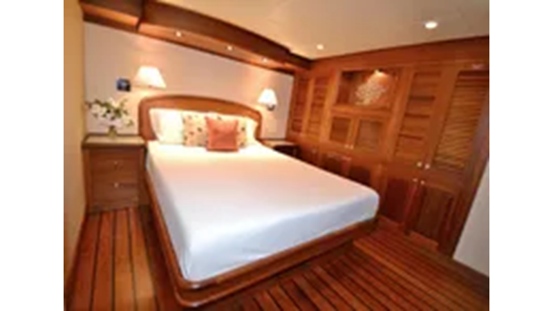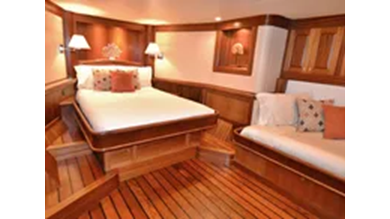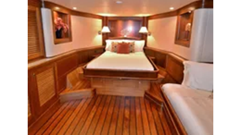 VIP Guest Staterooms are located on level 1, 2 port and starboard queen berth staterooms located forward of amidships, guest heads with heated floors and shower, hanging lockers, under berth storage and night stand cabinet beside the berths. Family VIP stateroom located forward,one queen with full walk around and one couch that converts into two twin bunk style beds, guest head with heated flooring and shower, and hanging lockers.