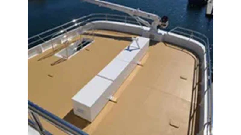 Boat Deck is located aft on level 3 with large center storage boxes abd welded in pads for universal toy mounts.