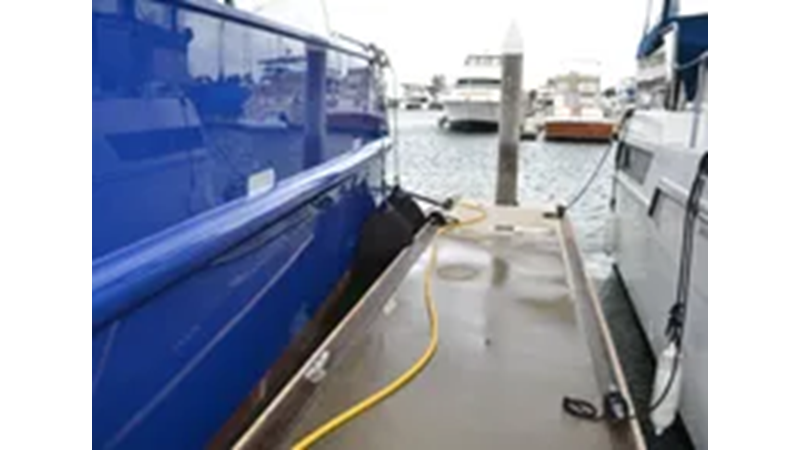 Swim Step is 4’ wide on stern with entry through a water tight door into the lazarrette / engine room, entry stairs to the aft deck on level 2.