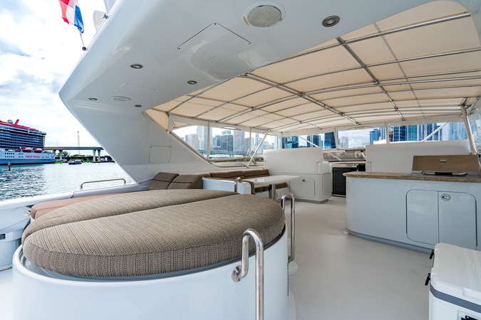 Spacious flybridge w/ Jacuzzi, bar and grill. Powered by MTU/DDC 16V-2000’s, Northern Light gens, Atlas shore power system, stabilizers, bow thruster, etc. Perfect layout for private and/or charter usage!