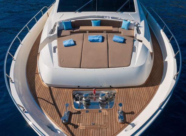 The aft deck provides additional dining space and comfortable seating, while the bow area boasts sunbeds with an awning for shade, offering another idyllic spot to unwind while taking in breathtaking views.