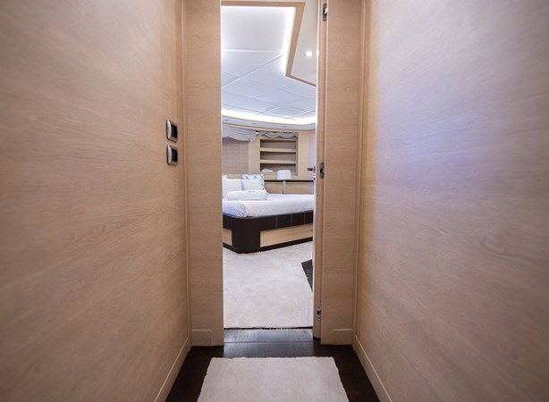 The full-beam master suite, accessed via a private staircase, serves as the main stateroom, while the VIP cabin provides ample space and luxury. A well-appointed double cabin and a twin cabin with an additional Pullman berth ensure flexible sleeping arrangements. For the crew, separate quarters with independent access accommodate up to 4 members, allowing for discreet service and privacy for guests.