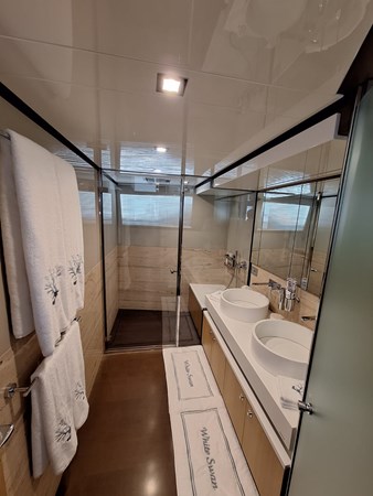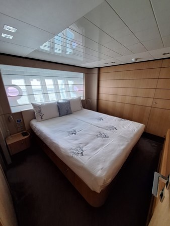 Powered by twin MTU 16V 2000 engines producing 2 × 2630 HP with only 1,460 hours, she comfortably cruises at around