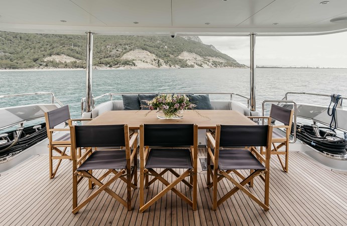 Powered by twin Cummins QSM-11 engines, PAPILLON maintains a cruising speed of 9 knots and a range of over 3,500 nautical miles, allowing for extended travel between refueling stops.