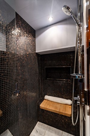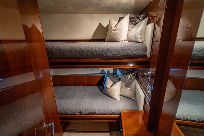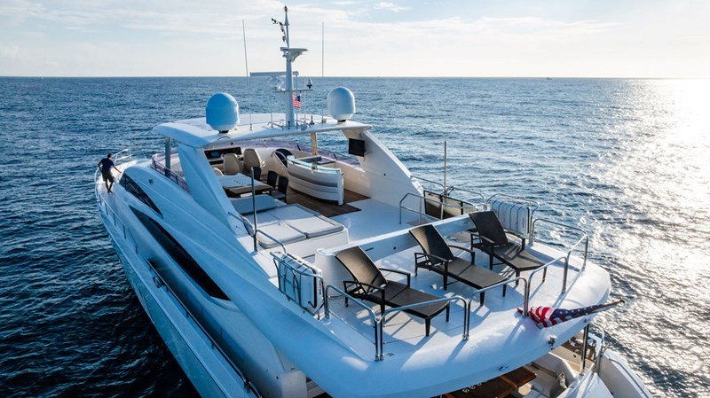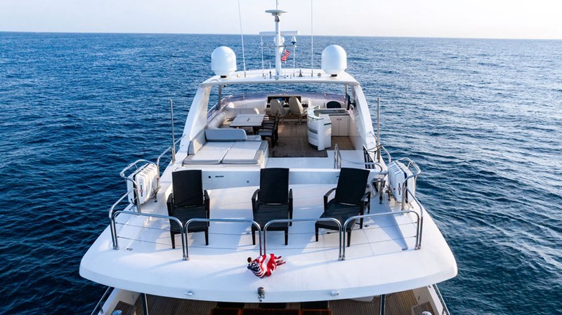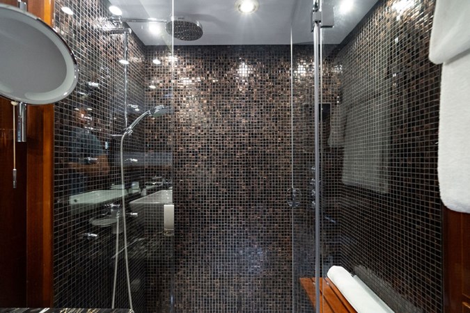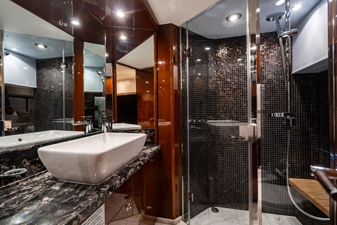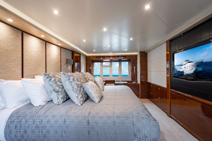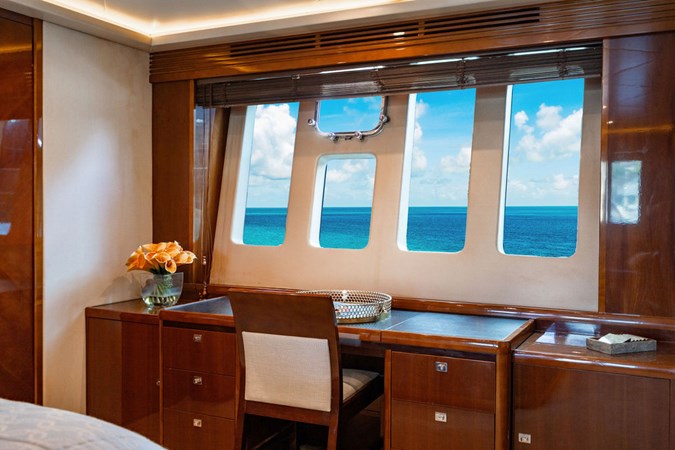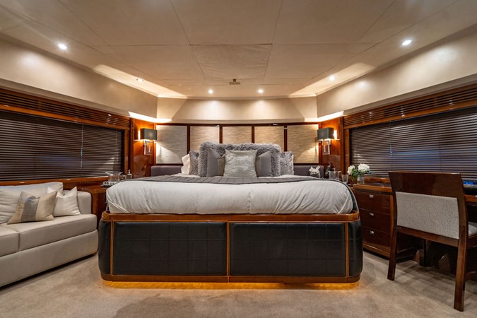 Inside, her spacious interior layout is designed for entertaining and relaxation. Expansive salon and dining spaces flow seamlessly into generous outdoor decks, creating multiple zones for gathering with family and guests. The accommodations are refined and luxurious, offering privacy, comfort, and all the modern amenities expected of a yacht in her class.