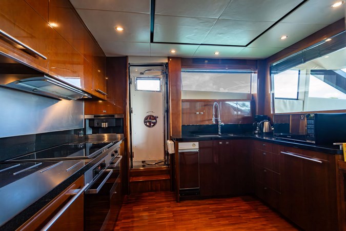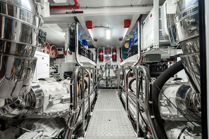 Powered by twin MTU 16V 2000 M93 engines producing 2,400 horsepower each, this yacht offers exhilarating performance—cruising comfortably at 20 knots with a top speed nearing 28 knots. Precision engineering combines with Princess’s renowned craftsmanship, delivering a smooth, stable ride and the thrill of true performance yachting.