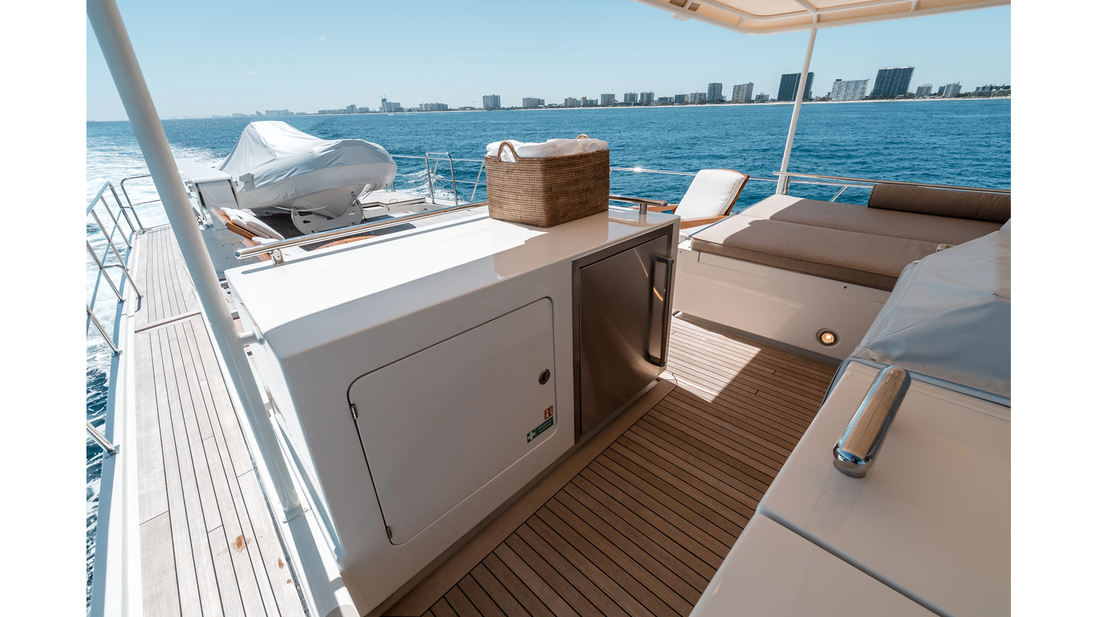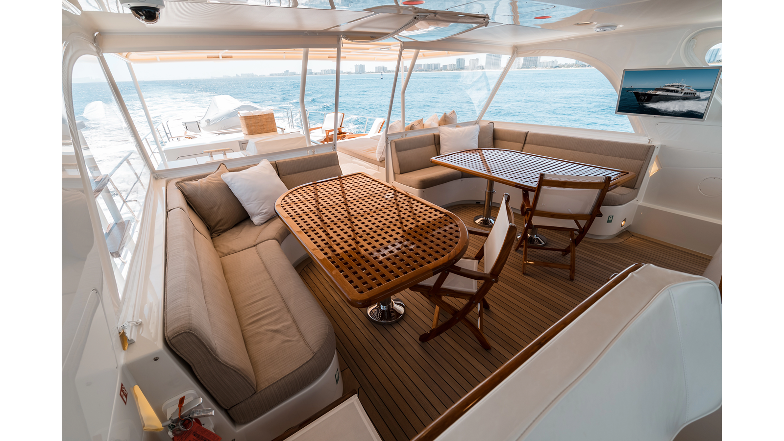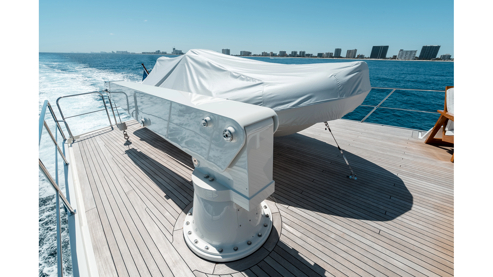 Services for Engines and Generators Complete (10/25) Updated Ceramic Coat and Varnish (10/25) Full Bottom Job Completed; Props Balanced (10/25) Prop Speed on All Running Gear (10/25) New Commercial Dryer Extended Flybridge Awning with Carbon Fiber Poles Membranes Replaced on Water Maker Updated Electric Heads in Guest and VIP Staterooms Garmin/VHF/Fusion Stereo Added to Tender Updated Control Box for IsoBoost Transformer PPF Film on Aft Deck Table, Salon, Dining, and Breakfast Tables New Steering Ram ($20K) $1.5M+ Refit (Fall 2024) at Safe Harbor LMC Including:
