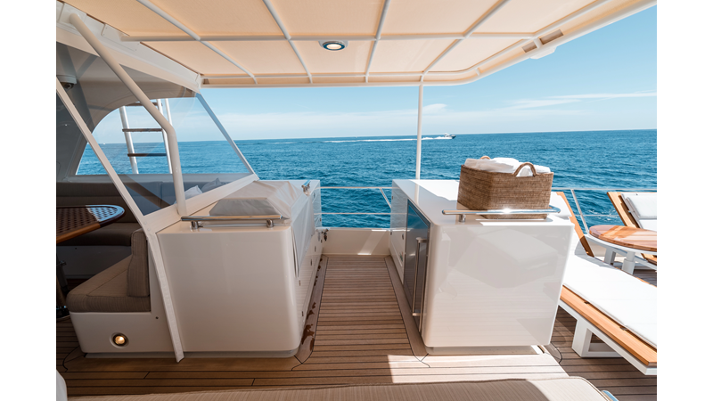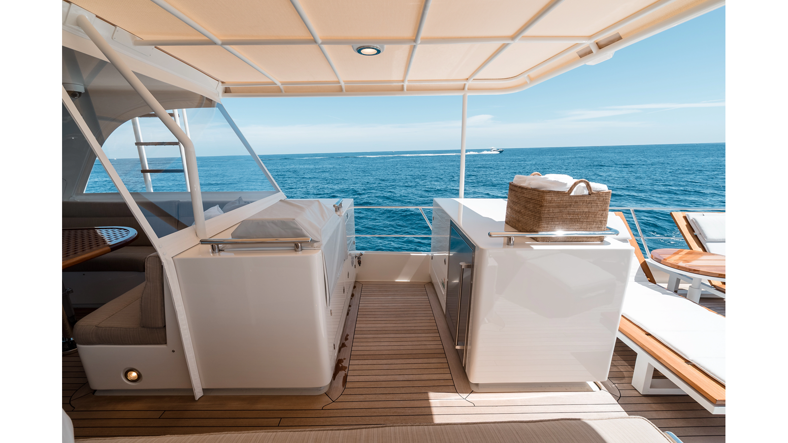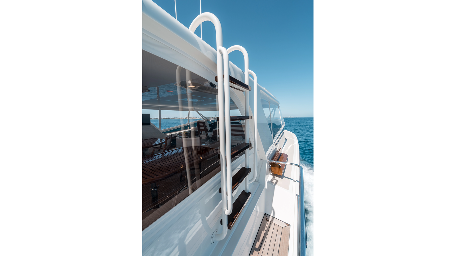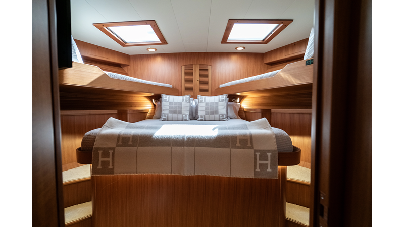 Services for Engines and Generators Complete (10/25) Updated Ceramic Coat and Varnish (10/25) Full Bottom Job Completed; Props Balanced (10/25) Prop Speed on All Running Gear (10/25) New Commercial Dryer Extended Flybridge Awning with Carbon Fiber Poles Membranes Replaced on Water Maker Updated Electric Heads in Guest and VIP Staterooms Garmin/VHF/Fusion Stereo Added to Tender Updated Control Box for IsoBoost Transformer PPF Film on Aft Deck Table, Salon, Dining, and Breakfast Tables New Steering Ram ($20K) $1.5M+ Refit (Fall 2024) at Safe Harbor LMC Including: