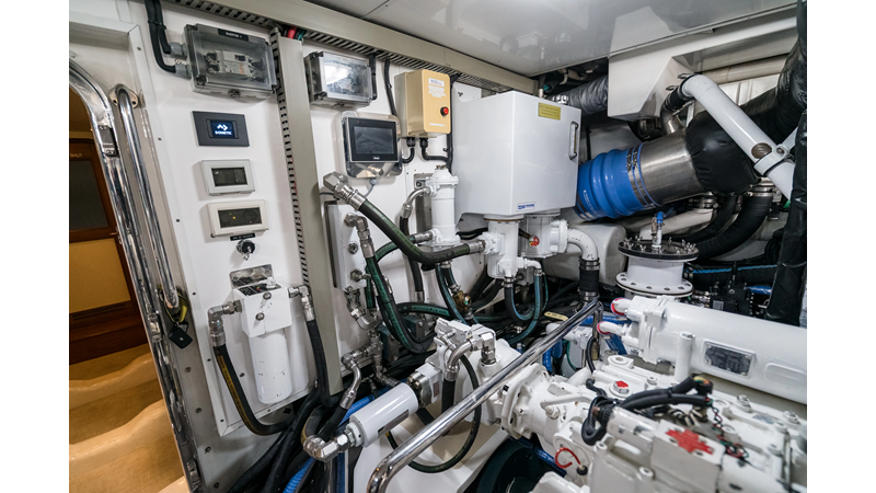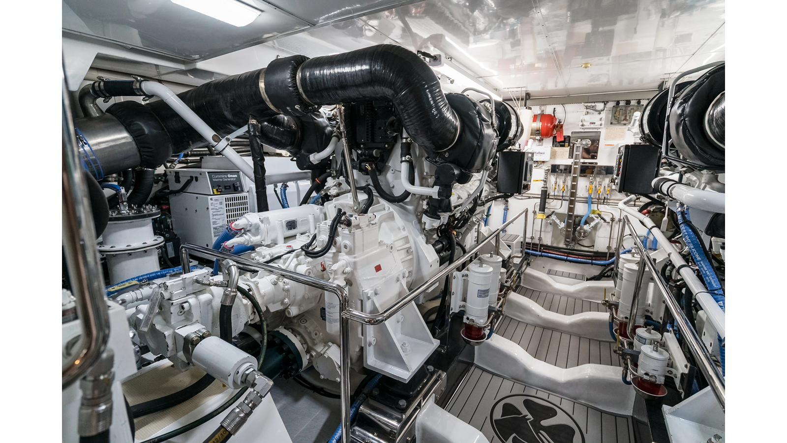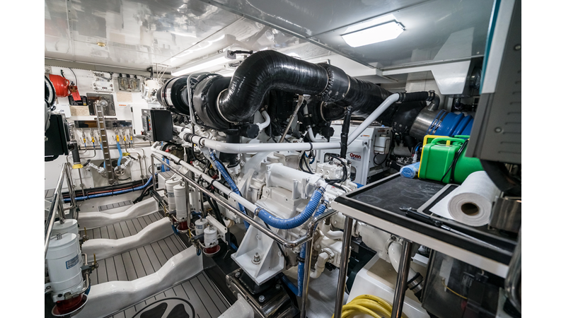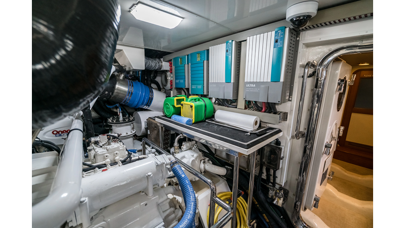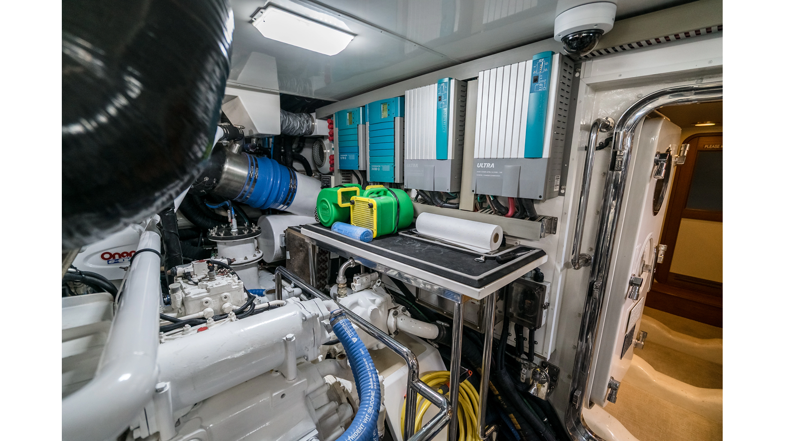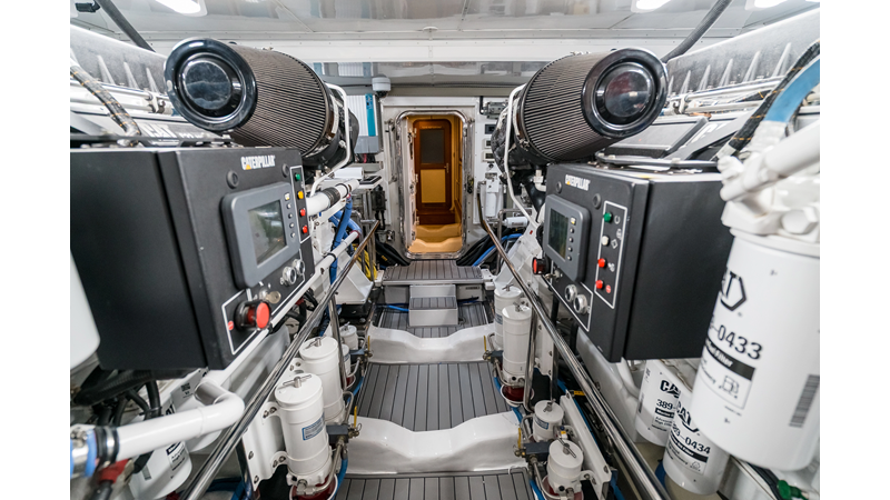Caterpillar C32s Fully Serviced with Recently Replaced Aftercoolers YachtController Side Power Bow and Stern Thrusters Twin Onan 27.5 kW Generators with NAIAD Stabilizers SeaRecovery Aquatic Water Maker Preferred 4 Stateroom/5 Head Layout (Full-Beam Staterooms) + Crew Custom Inflatable Toy Dock DeAngelo Exhaust Risers Replaced 2022 Flybridge Air Conditioning Added 2022 A-Sea Frequency Converter (Recently Serviced) Updated A/V and Bose SoundTouch System with 9 Zones Recent Work Completed 2025: