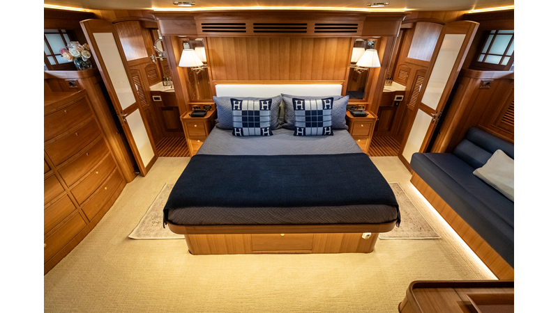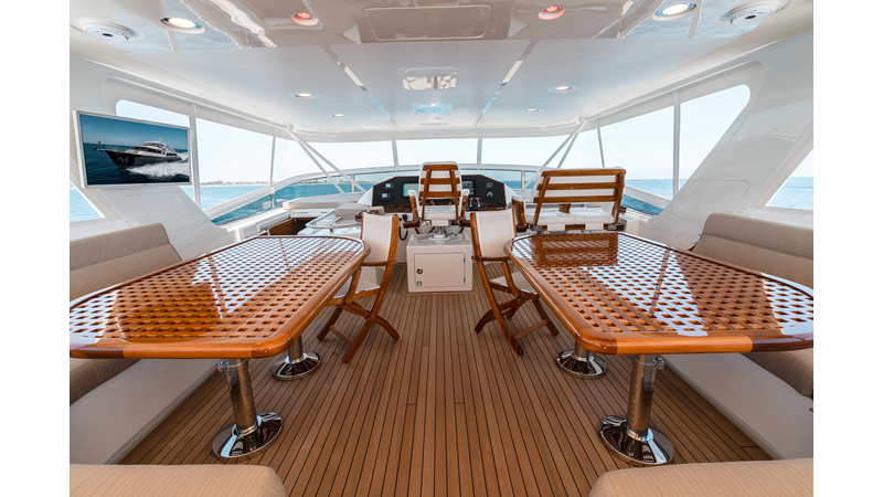 Full Paint Job: Rybovich Coatings Dept. Exterior Paint Superstructure/Hull with Awlcraft 3000 “Flag Blue” Hull and "Ostrea" White Superstructure with “Moon Dust” Non-Skid Full Ceramic Coating Completed New Teak Throughout: Teak Decking Systems Deck Replacement Using Vacuum Bag Adhesive Infusion New Garmin Electronics Package with Redundant Backbones and Sensors Including Sounders, Radios, AIS, Radar, SAT Compass, Cameras, Nav Radios, etc. Dual Starlink Marine Antenna System 2023 Axis 4.2 Inflatable with 60hp Yamaha (Under Warranty) with New Cover, YRM Removable Chocks, and Custom Trailer Full Hardware Removal and Replacement with Fasteners Renewed on Entire Vessel Full Running Gear Service: Shafts and Rudders, New Bearings, Seals, Prop Reconditioning, Bottom Paint, Prop Speed (Humphree Tabs Serviced) Full Interior Soft Goods Replacement Including RH and Hermes Décor New Flybridge Enclosure Varnish Stripped and Reapplied (16 Coats Awlbrite System) David Sutherland/Summit Exterior Teak Furniture Stripped and Recoated Full Exterior Cushions and Stamoid Cover Replacement Anchors Sanded and Polished Hydraulic Systems Serviced, Fin Seals Replaced, Windlasses Rebuilt, Aft Windlass Replaced ElectroSea Strainer System with Dual Stainless Steel Raw Water pumps Willy Vac Engine Room Vacuum System New Isotherm Stainless Aft Deck Fridge and New Sub Zero Flybridge Fridge Onboard SpotZero Serviced New Dekit Synthetic Matting in Engine Room and Lazarette New Miele Washer and Dryer New Carpeting Throughout
