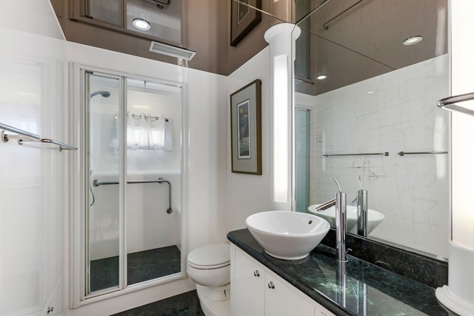 REVERIE is a one-of-a-kind custom 98’ Horizon Tri-Deck, offered for the first time by her original owner, who uniquely served as the engineer of record for Horizon during her construction. She is exceptionally well equipped, featuring an ASEA shore power converter that allows compatibility with any power source, a large inverter bank for quiet nights at anchor, bow and stern thrusters, a diesel heater, passarelle, and two davits. With low engine hours (under 1,000 on the mains), REVERIE is an excellent platform for cruising in both warm and cold climates and represents a remarkable opportunity in this size range.