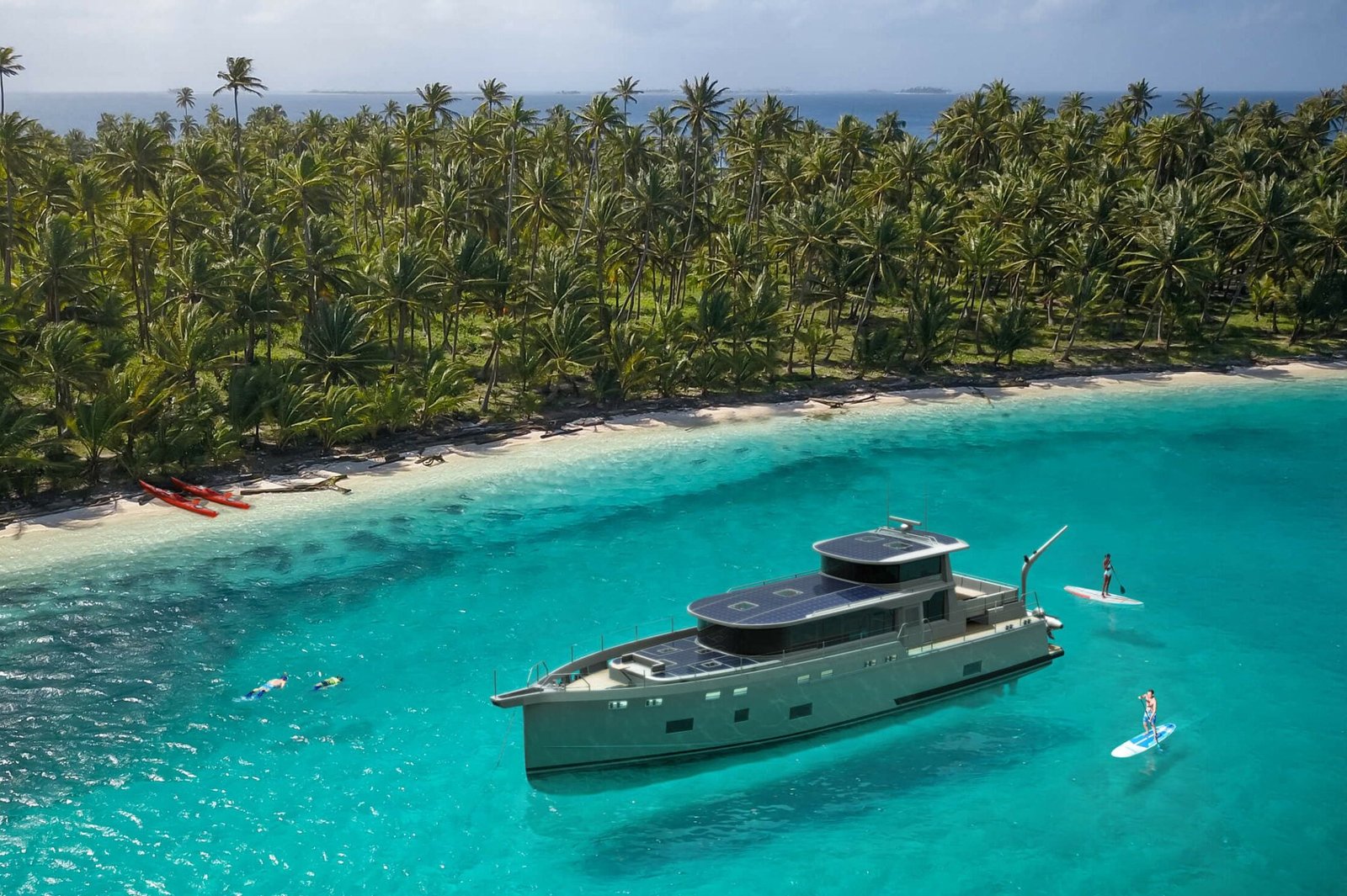 The Arksen 65 is an innovative explorer yacht engineered to take you on unforgettable journeys across the world’s oceans. With a length of 20 meters, this vessel offers a perfect blend of advanced technology, comfort, and sustainability. Crafted with a robust aluminium hull, the Arksen 65 is built to withstand the harshest maritime environments while ensuring safety and reliability. Its semi-displacement hull design allows for impressive fuel efficiency and range, making it ideal for long-distance cruising. The yacht is powered by twin inboard engines, delivering a cruising speed of 12 knots and a maximum speed of 15 knots, with a fuel capacity that enables extended voyages without frequent refueling stops. The interior of the Arksen 65 is thoughtfully designed to accommodate up to 8 guests comfortably, with two luxurious cabins and ample living space for relaxation and entertainment. The onboard amenities include a fully equipped galley, a spacious salon, and outdoor dining areas, ensuring a home-like atmosphere on the water. The yacht’s design emphasizes eco-friendly practices, incorporating solar panels and energy-efficient systems to minimize environmental impact. Whether exploring remote islands or navigating through icy waters, the Arksen 65 is your reliable partner for adventure and sustainability.