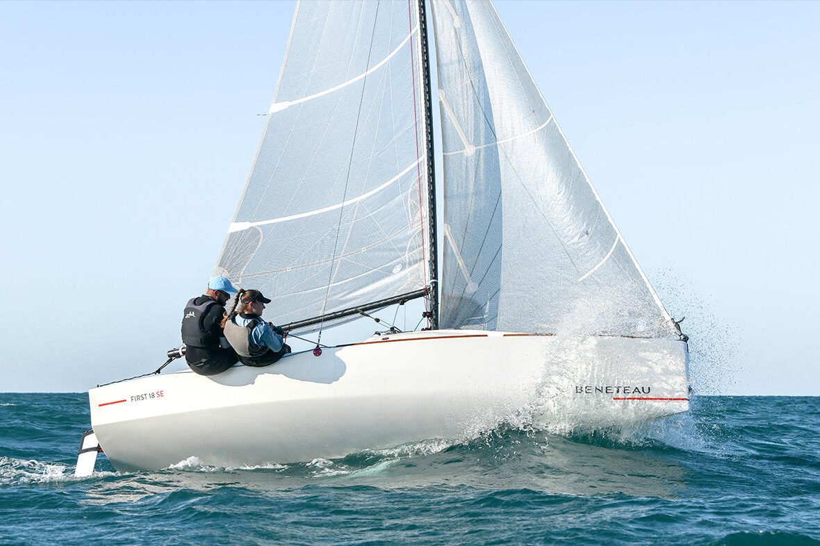The Beneteau First 18SE is a compact and agile sailing yacht, perfectly crafted for those who seek the thrill of racing and the joy of coastal cruising. Measuring just 5.55 meters in length, this modern monohull is designed by the renowned naval architect Sam Manuard, ensuring exceptional performance and handling on the water. The yacht’s lightweight and planing hull configuration, built from durable GRP, offers superb speed and agility, making it a favorite among competitive sailors and recreational enthusiasts alike. The First 18SE is equipped with a retractable keel, allowing for easy trailerability and access to shallow waters, enhancing its versatility for exploration. The deck layout is optimized for simplicity and efficiency, featuring a spacious cockpit that can comfortably accommodate up to four day guests. Inside, the minimalist design focuses on functionality and comfort, with enough space to sleep two. While this yacht is primarily powered by sails, an optional outboard engine can be added for auxiliary power, making it even more adaptable to various sailing conditions. The Beneteau First 18SE embodies the perfect blend of excitement, practicality, and innovation, making it an ideal choice for sailors looking to make the most of their time on the water. With a new price starting at approximately 25,000 EUR, this yacht offers exceptional value for both new and seasoned sailors. Used models are equally attractive, with prices ranging from 15,000 EUR to 20,000 EUR, depending on condition and equipment.