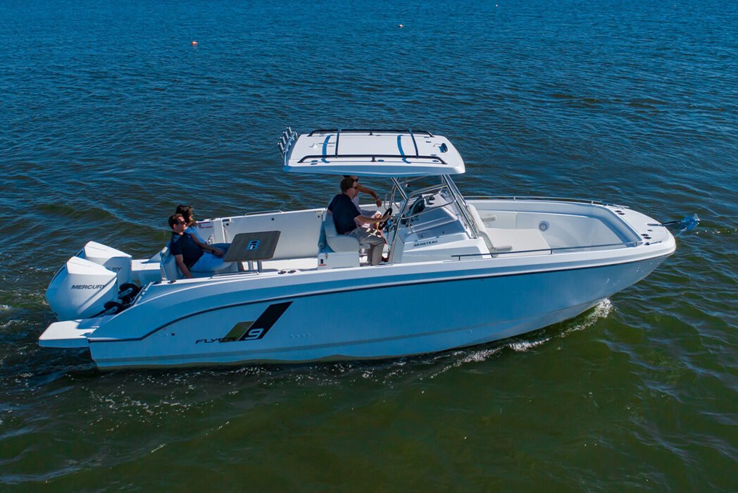 The Beneteau Flyer 9 SPACEdeck is a versatile and stylish day boat designed for those who seek adventure and comfort on the water. Measuring 9 meters in length, this open boat boasts a striking design with a spacious deck layout, making it an ideal choice for both leisure and sporting activities. The Flyer 9 SPACEdeck offers a large forward sundeck, a spacious cockpit area with ample seating, and an innovative modular layout that allows for easy movement and customization to suit your needs. The hull is constructed from high-quality GRP, ensuring durability and performance in various sea conditions. Equipped with twin outboard engines, the Beneteau Flyer 9 SPACEdeck delivers impressive performance with a cruising speed of 25 knots and a maximum speed of up to 40 knots. The boat’s design emphasizes safety and ease of handling, making it suitable for both novice and experienced boaters. The Flyer 9 SPACEdeck can comfortably accommodate up to 10 guests, making it perfect for family outings or gatherings with friends. It also features storage compartments for water sports equipment and picnic supplies, enhancing its versatility for a variety of activities. Designed by Beneteau’s in-house team, the Flyer 9 SPACEdeck combines innovative design, performance, and comfort, making it a top choice for those looking to explore the sea with style and convenience.