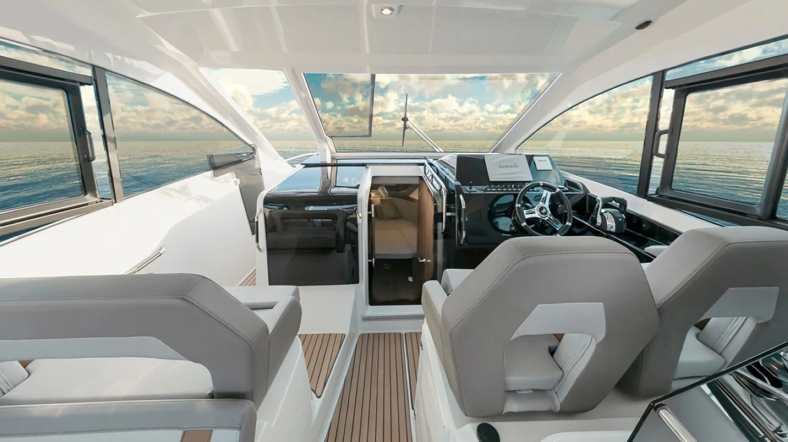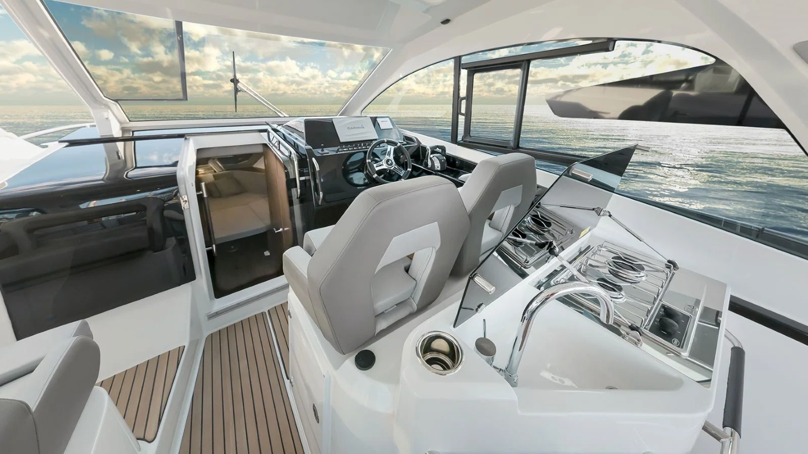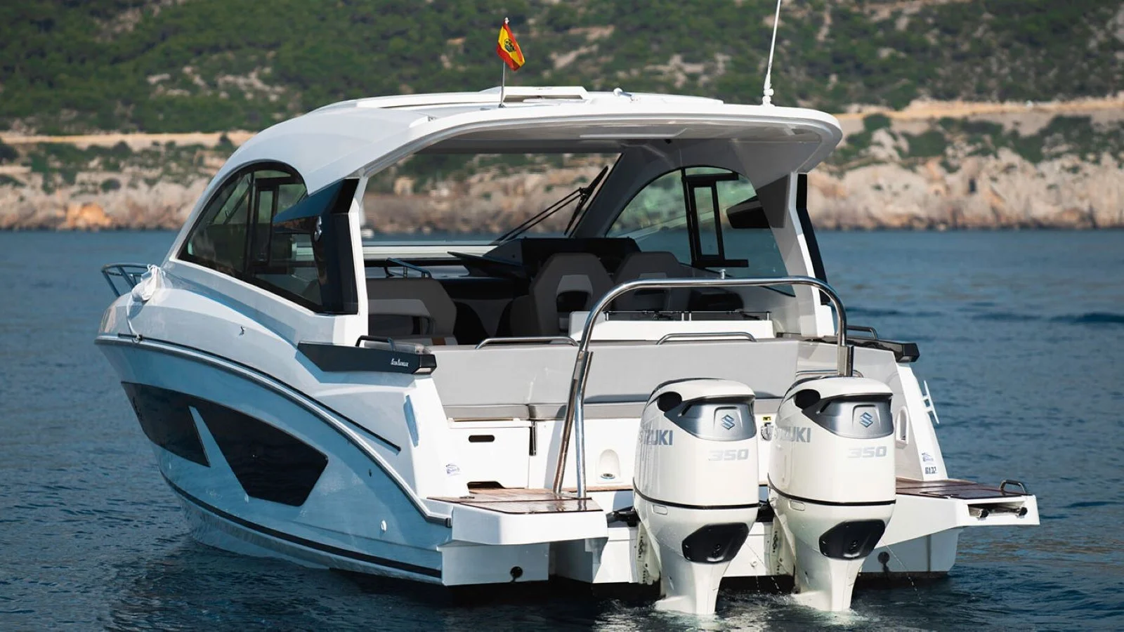 Powered by twin inboard engines, the Gran Turismo 32 delivers a thrilling ride with a cruising speed of 27 knots and a maximum speed of 35 knots. Its innovative Air Step® 2 hull design enhances both performance and fuel efficiency, allowing for smooth and stable navigation. With a beam of 3.32 meters and a draft of 1.3 meters, this yacht is easy to maneuver in various marine environments.