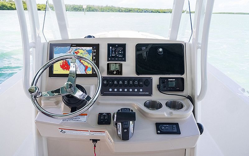 The Boston Whaler 250 Dauntless is a versatile center console boat designed to enhance both fishing excursions and family leisure trips. Known for its robust construction and innovative design, the 250 Dauntless offers a seamless blend of performance, comfort, and utility. Measuring approximately 7.62 meters (25 feet) in length, this model is crafted with a high-quality GRP hull, ensuring durability and stability in various sea conditions. The planning hull configuration allows for smooth and efficient travel, optimizing fuel efficiency and ride comfort. Equipped with a powerful outboard engine, typically a Mercury 300 V8, the 250 Dauntless reaches a maximum speed of around 45 knots, making it ideal for quick trips to favorite fishing spots or leisurely cruises along the coastline. With a fuel capacity of 416 liters, it offers an impressive range to explore distant waters without frequent refueling. The spacious deck layout includes ample seating, storage compartments, and a dedicated fishing area, enhanced by features like rod holders and a livewell. The helm station is designed with ergonomics in mind, featuring state-of-the-art navigation and control systems for a seamless piloting experience. The Boston Whaler design team ensures the highest standards of safety and functionality, making the 250 Dauntless a reliable choice for all marine adventures. Additionally, the boat’s versatility extends to water sports and entertaining, with options for a tow arch and comfortable bow seating. Whether embarking on a weekend getaway or a day of offshore fishing, the Boston Whaler 250 Dauntless promises an unmatched boating experience.
