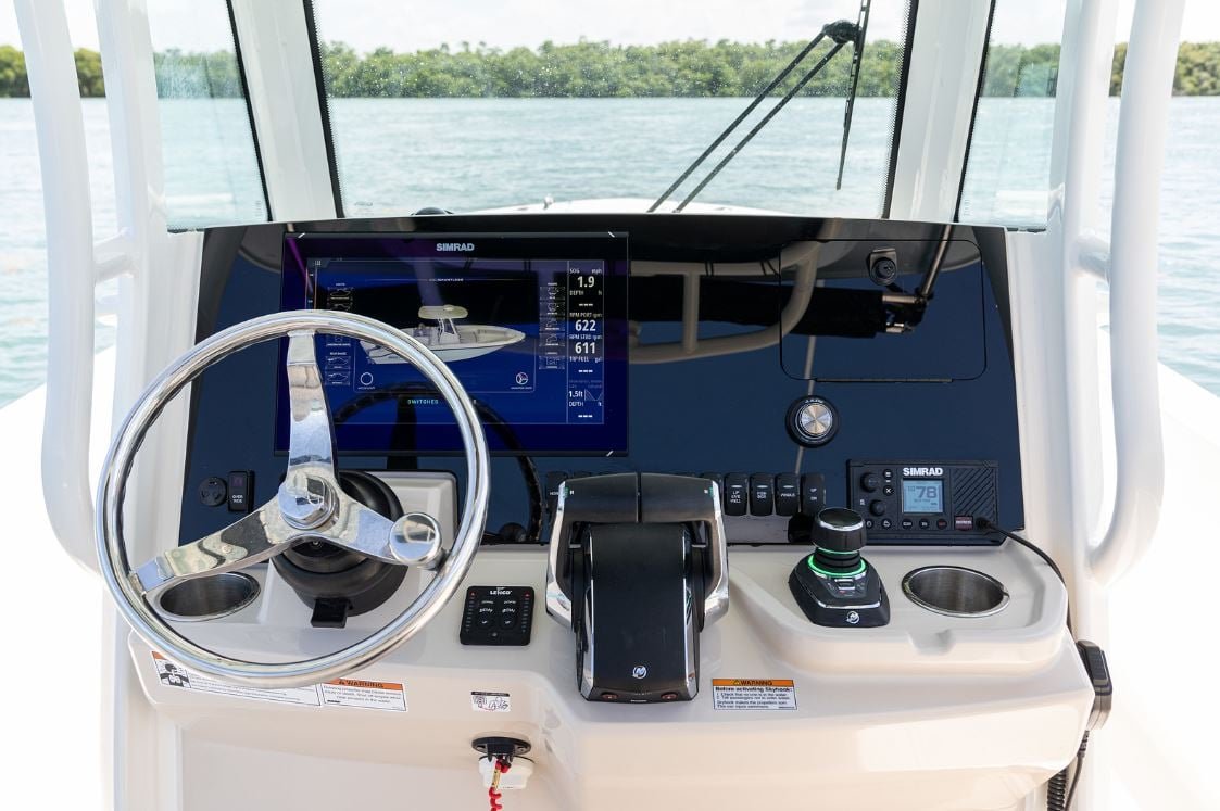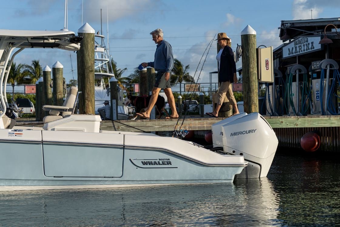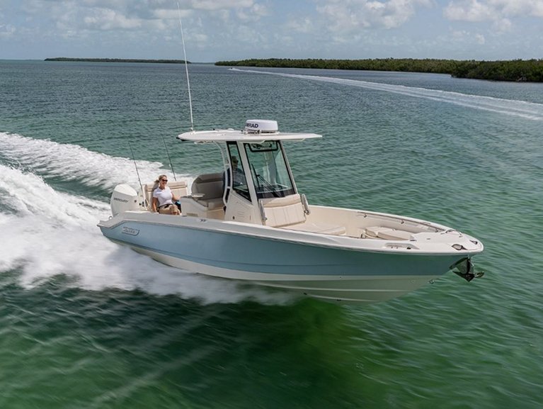 The Boston Whaler 280 Dauntless is a stellar embodiment of versatility and luxury in the center console category, making it an ideal choice for both fishing enthusiasts and families seeking adventure on the water. Measuring approximately 8.53 meters in length, the 280 Dauntless offers ample space and thoughtful features. This model boasts a spacious cockpit that allows for effortless movement, while the bow seating area can be transformed into a sun lounge, perfect for relaxation. With a beam of 2.74 meters, the boat ensures stability and comfort, even in challenging sea conditions. The 280 Dauntless is powered by twin Mercury outboard engines, with options up to 600 horsepower, delivering a smooth and powerful ride. The boat’s innovative design includes a unique swim patio, expanding the cockpit space and offering easy water access. The helm is equipped with state-of-the-art navigation electronics, ensuring precise control and confidence at the helm. The Dauntless line is renowned for its fishing capabilities, featuring ample rod holders, a livewell, and plenty of storage for gear. Yet, it doesn’t compromise on luxury; premium upholstery and high-quality finishes abound, making every trip a pleasure. With a fuel capacity of 662 liters, the 280 Dauntless offers an impressive range for long days on the water. Designed by Boston Whaler’s in-house team, this model reflects the brand’s commitment to quality and innovation. Whether you’re navigating coastal waters or exploring inland lakes, the Boston Whaler 280 Dauntless stands ready to deliver an exceptional boating experience.
