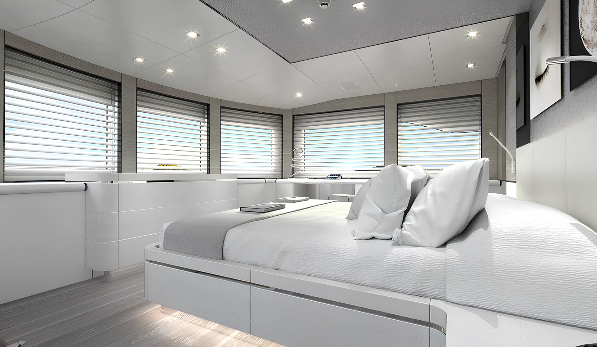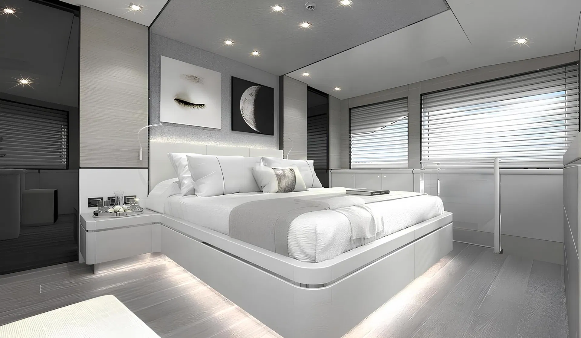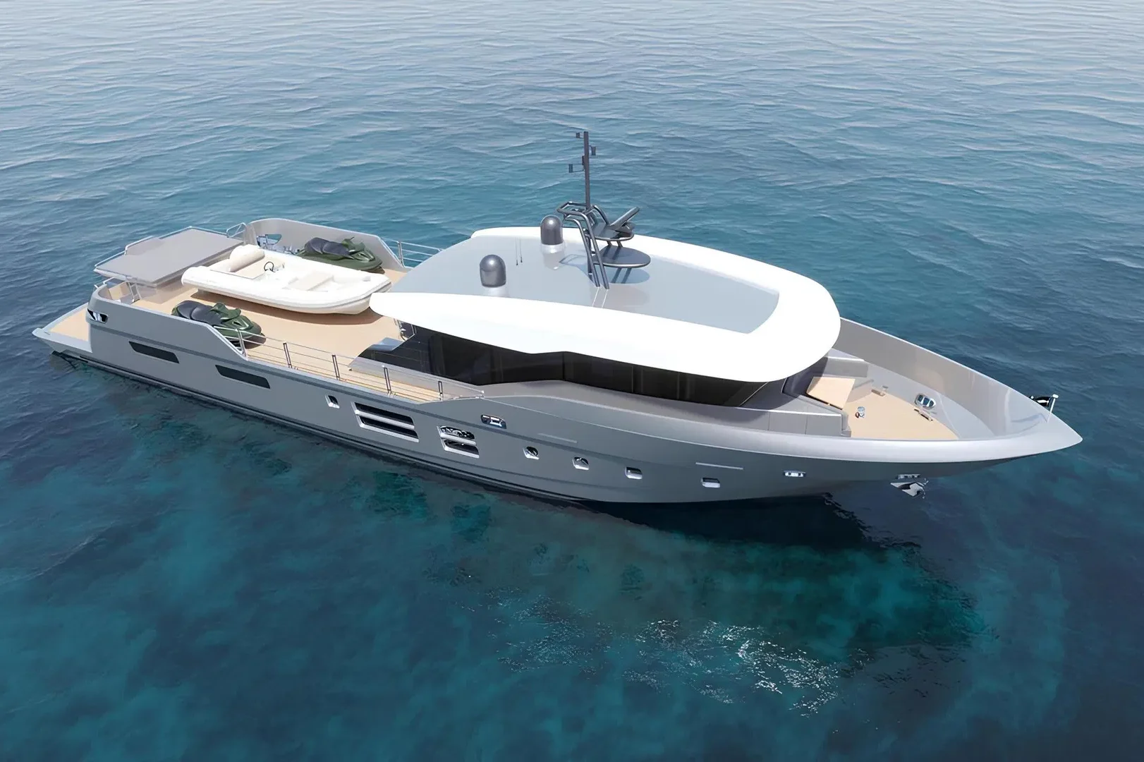 The Canados Oceanic 100 Shadow is a testament to Italian craftsmanship, blending elegance and practicality in a sleek, modern package. This luxury yacht stretches to approximately 30 meters, offering ample space for both relaxation and entertainment. Constructed with a GRP hull, the Oceanic 100 Shadow ensures a lightweight yet sturdy build, perfect for cruising in diverse conditions. Its planning hull configuration allows for efficient navigation, making it ideal for long voyages. Powered by robust inboard engines, this yacht reaches an impressive cruising speed of 21 knots and a maximum speed of 27 knots, ensuring swift and smooth journeys. The interior, designed by the renowned Cristiano Gatto, features a sophisticated yet comfortable ambiance with a layout that can accommodate up to 8 sleeping guests in 4 luxurious cabins. The well-appointed crew quarters support a team of 4, ensuring a seamless and enjoyable experience for all aboard. With a fuel capacity of 15,000 liters, the Oceanic 100 Shadow boasts an extensive range, allowing for extensive exploration without frequent refueling stops. This yacht embodies the spirit of adventure while maintaining the highest standards of luxury and comfort, making it a premier choice for discerning yacht enthusiasts around the world.